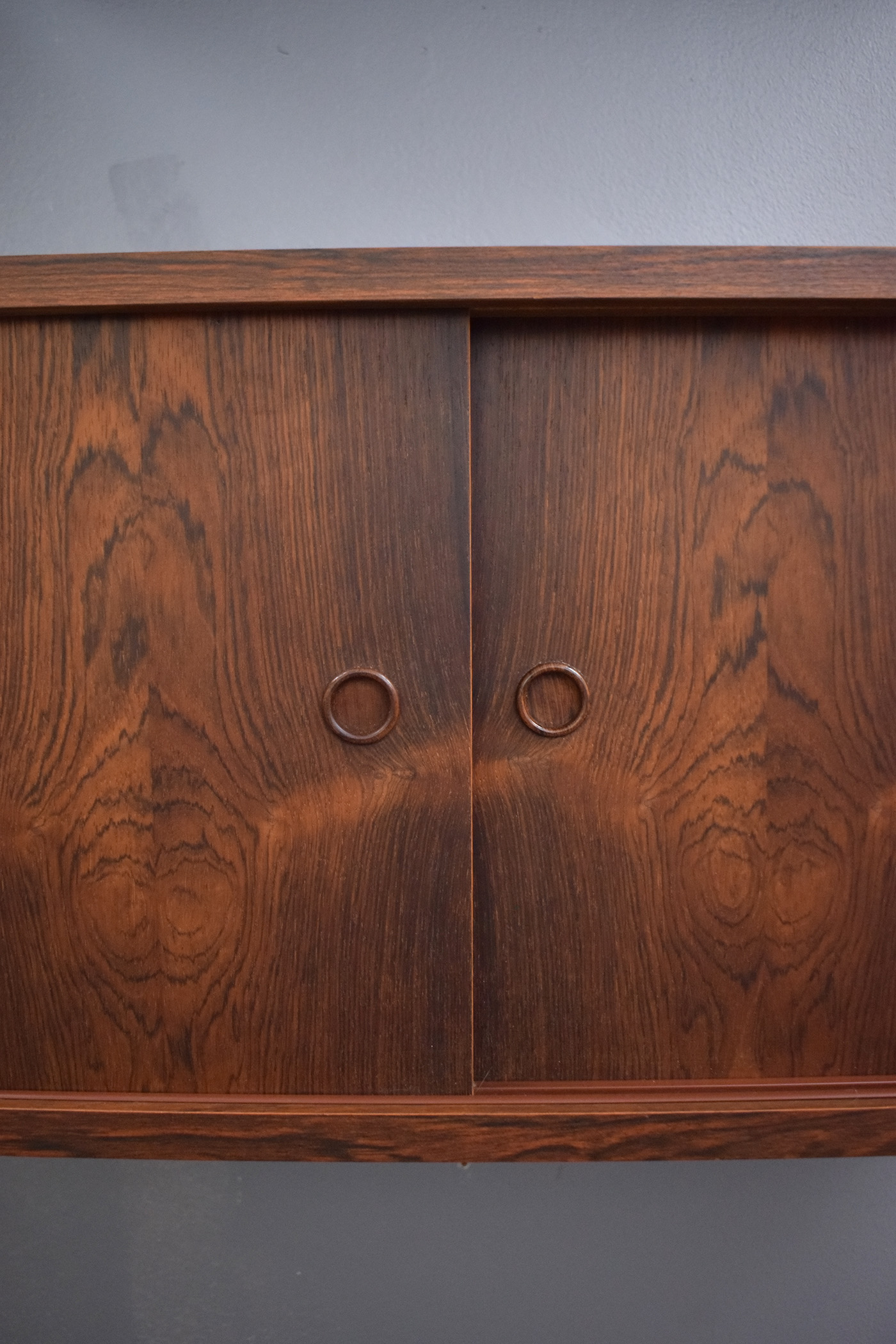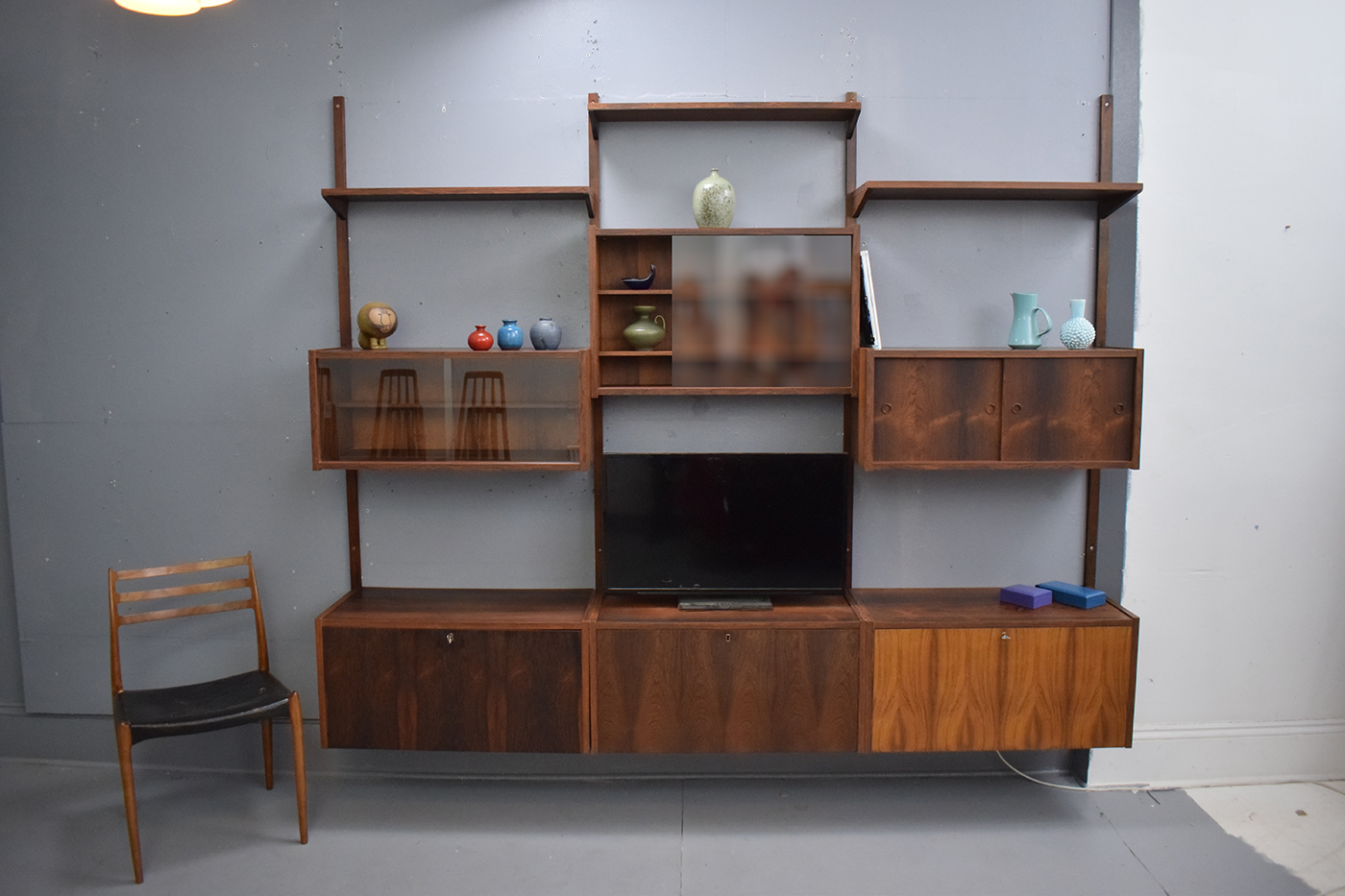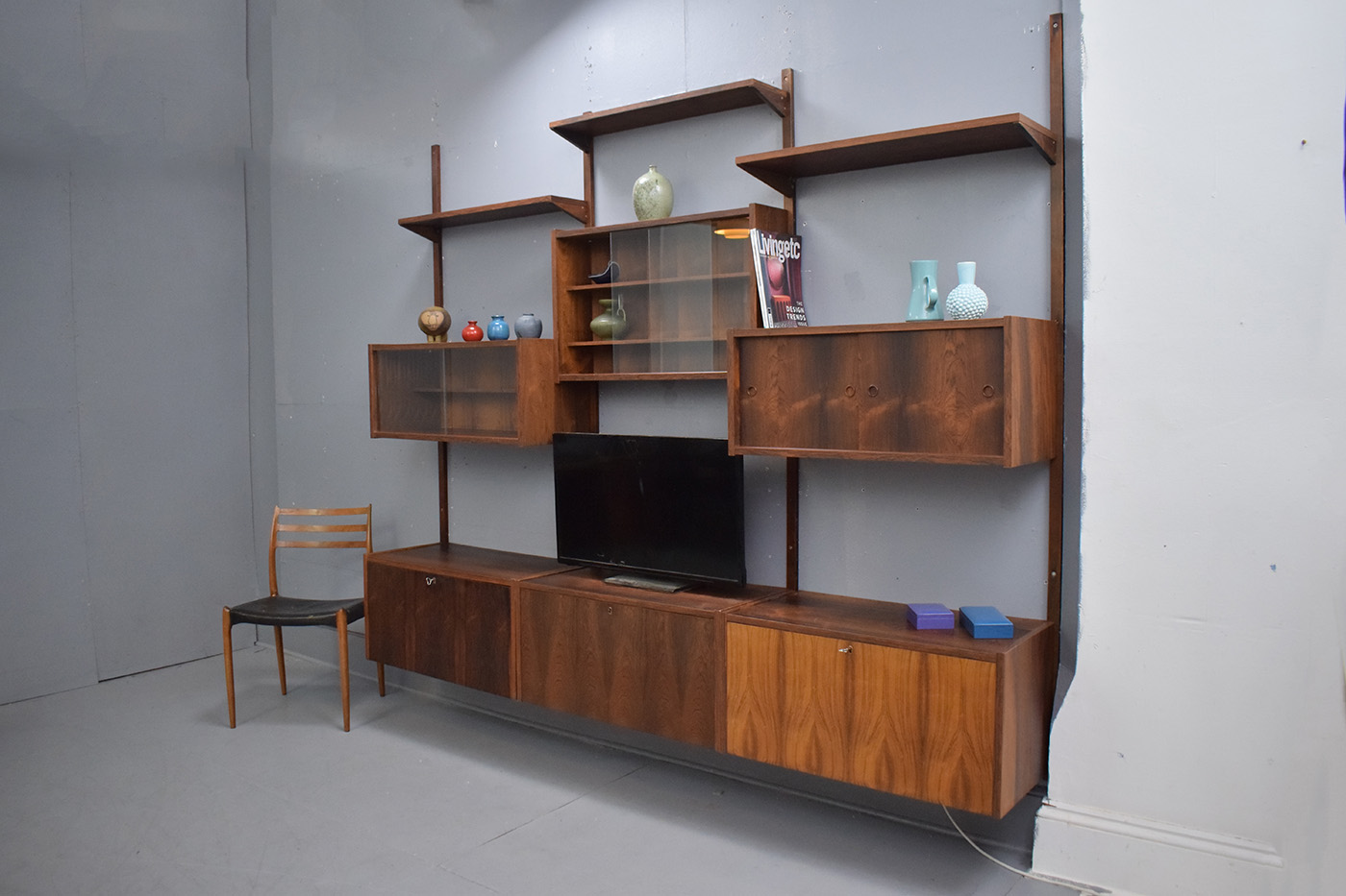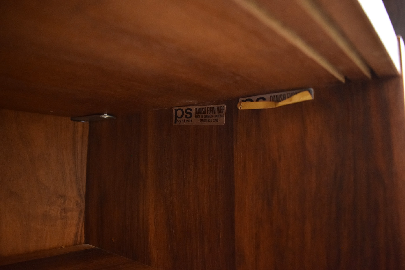 3 Bay vintage rosewood modular shelving system designed 1949 by Prebend Sorensen and produced by Randers mobelfabrik.