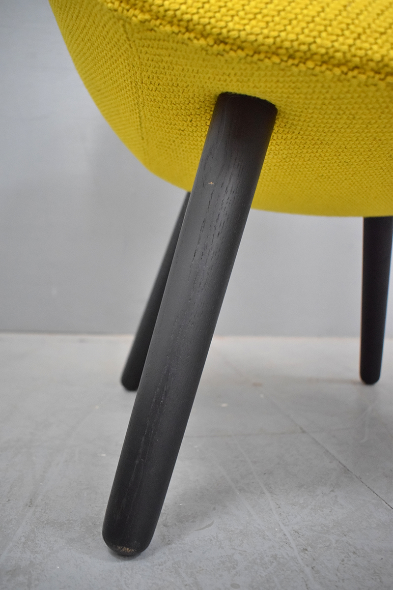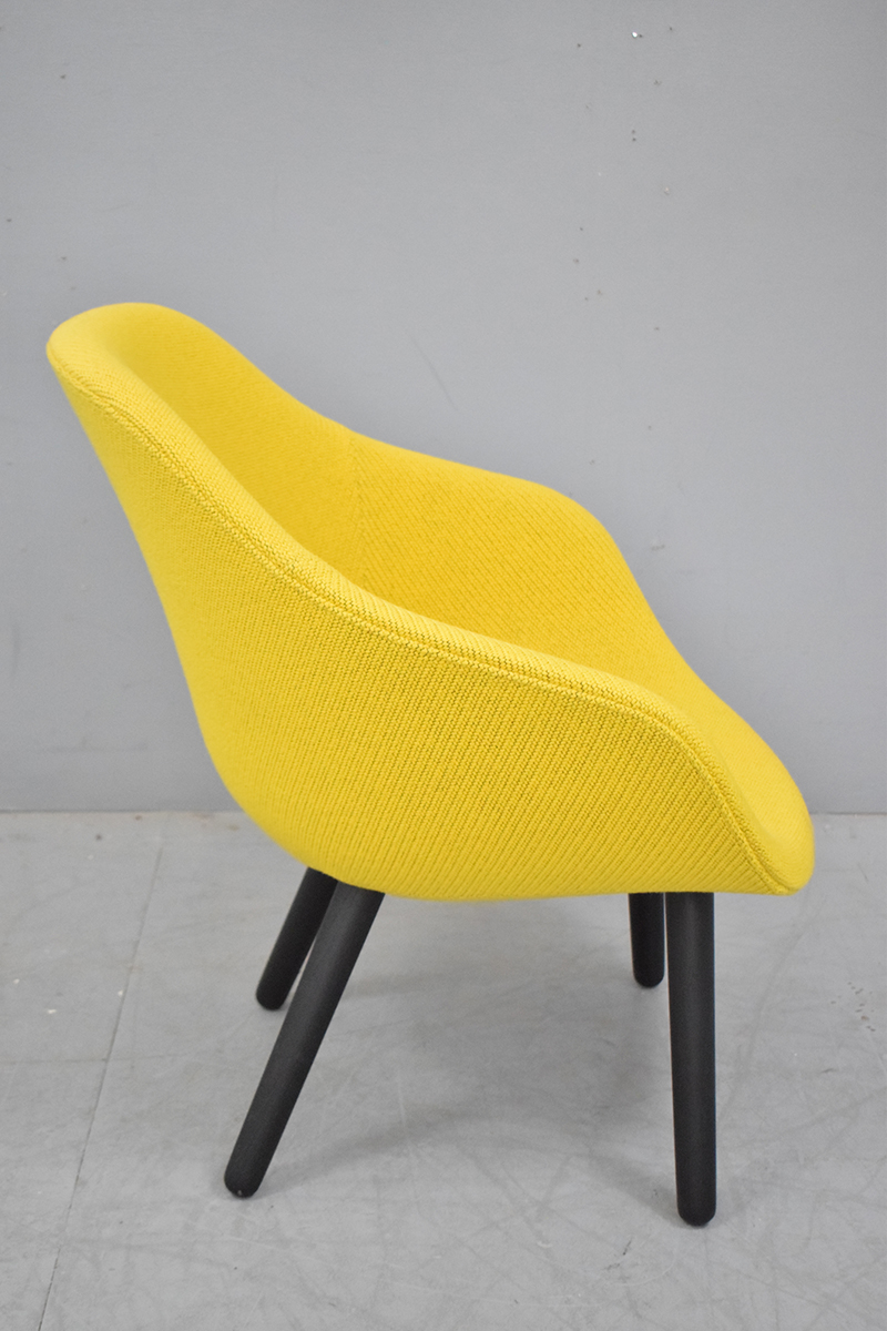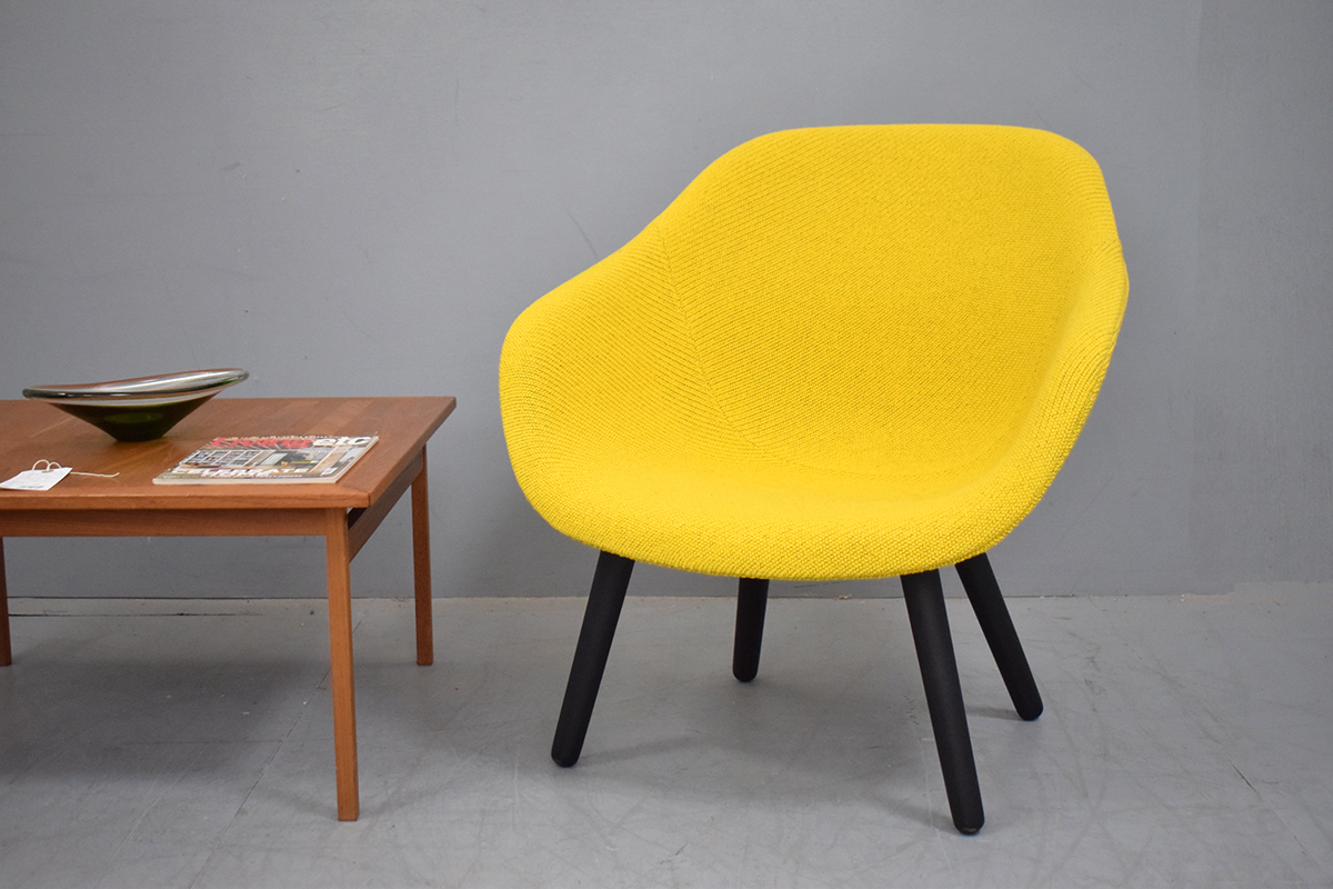 A modern classic from HAY upholstered in CODA2 fabric from KVADRAT in a bright sunflower yellow with an undertone of black.