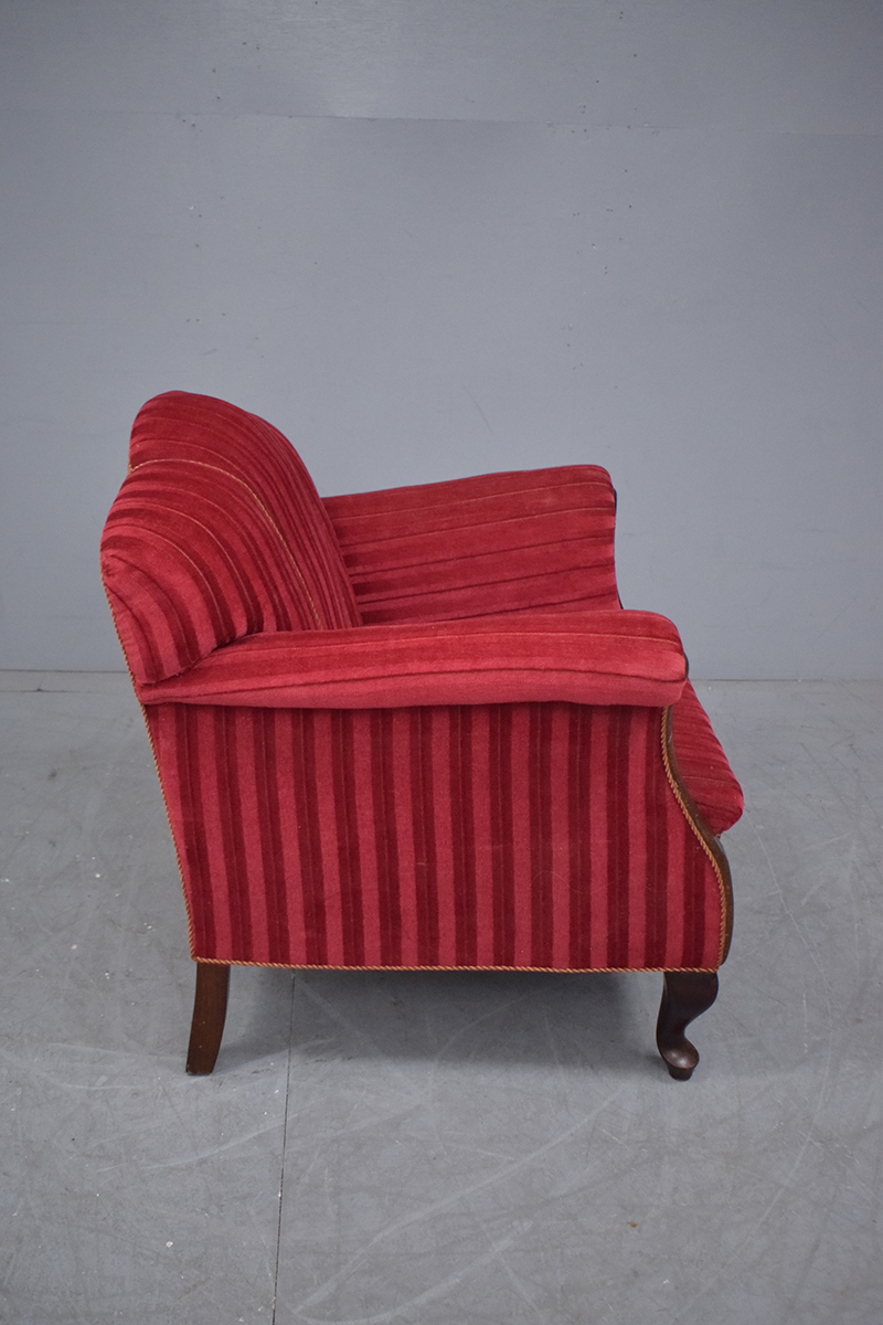 Antique large armchair with padded frame and cabriole legs produced mid 1940s by Danish cabinetmaker using traditional build techniques that make this chair very comfortable and suitable for reupholstery.