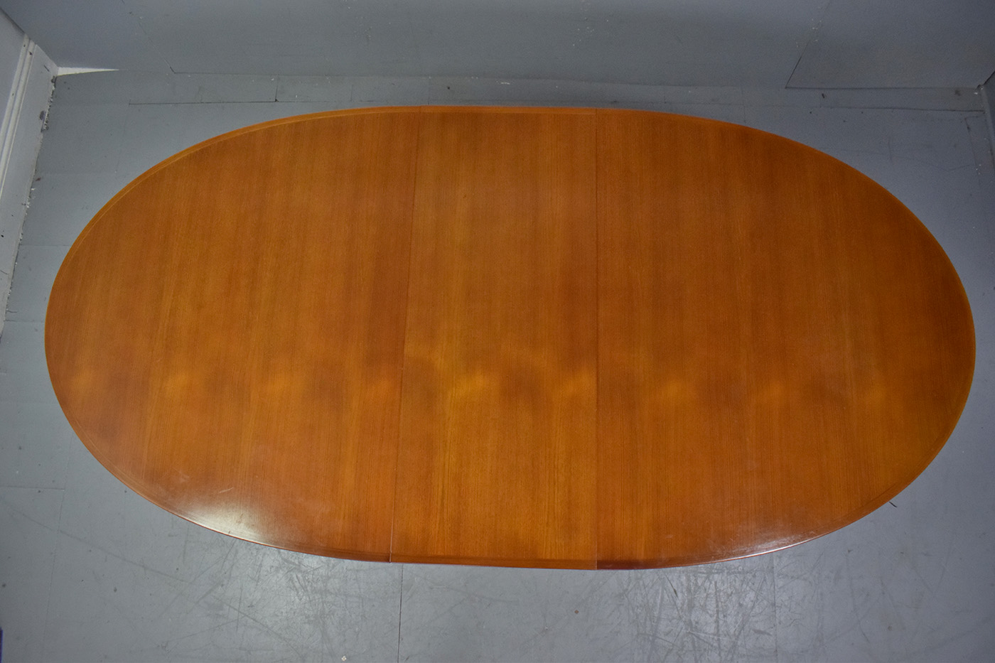 A beautifully shaped oval dining table which comfortably seats 6 before extending.