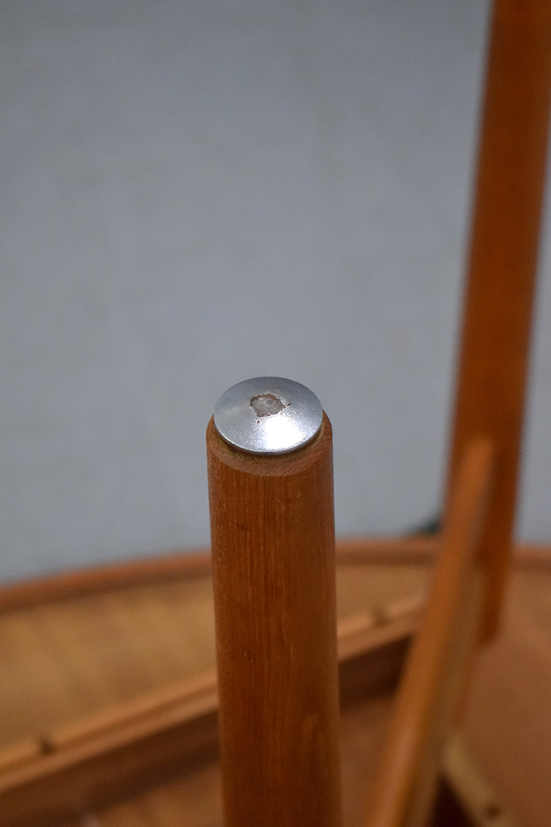 The table is in good condition, with some small marks and scratches, consistant with age. The table also only has one leaf, unfortunately the other leaf was misplaced by the previous owner.
