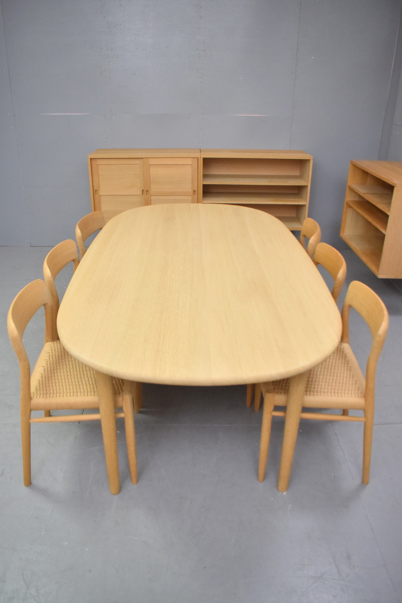 Large oval dining table in solid soap washed oak designed in 2005 and produced by Brodrene Andersen.