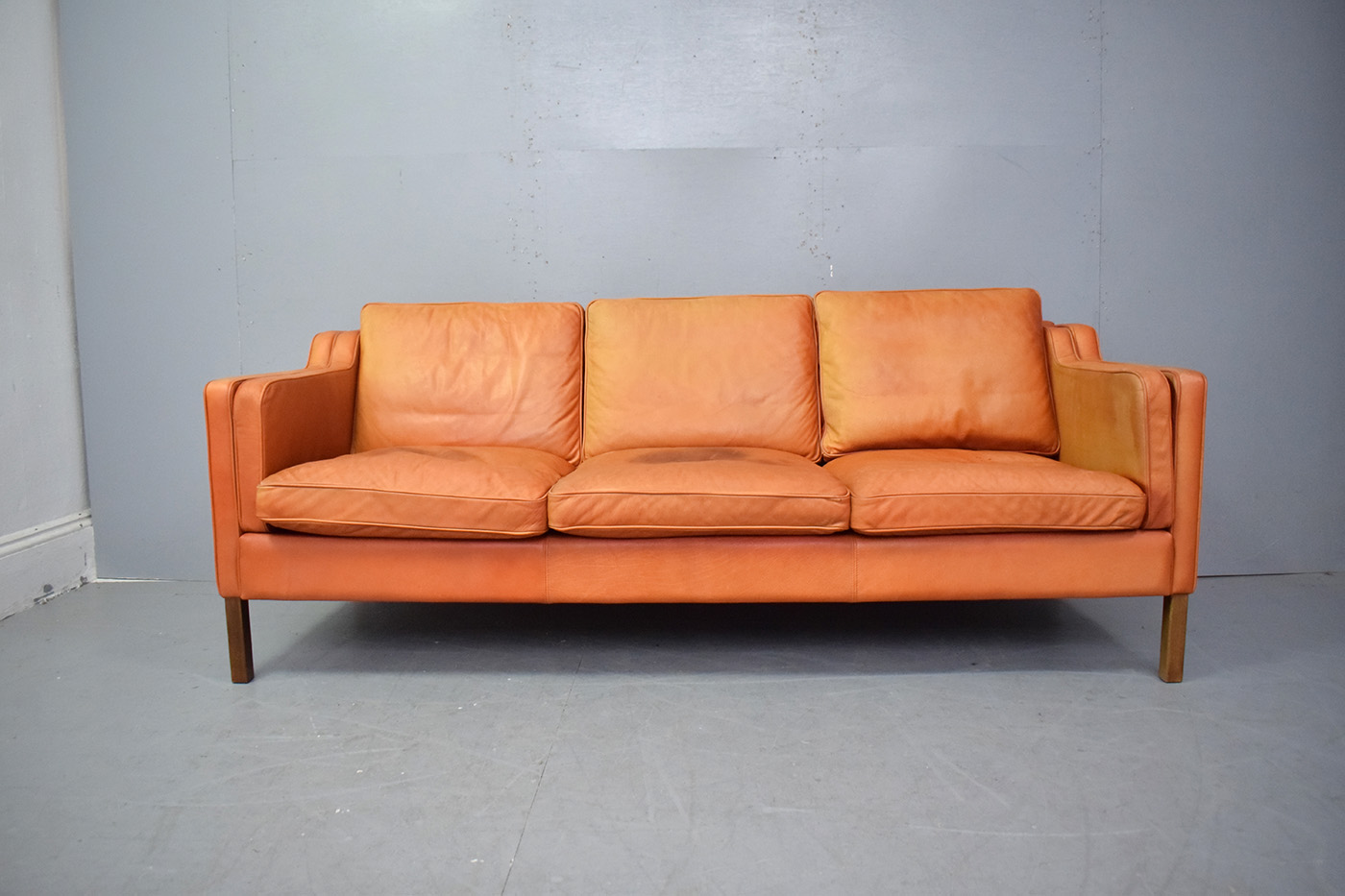 A classic Danish design box frame sofa that provides superior comfort in a compact space. The box sofa allows for a comfortable seating space without the need to be propped up by lots of cushions.