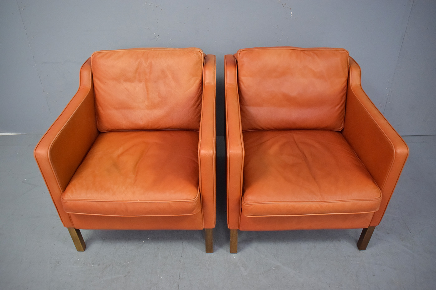 The chairs are in excellent condition, with some fading to the leather as pictured