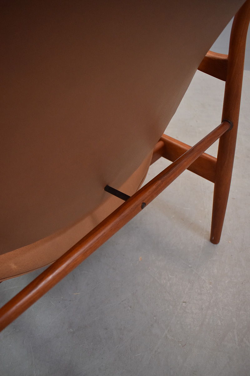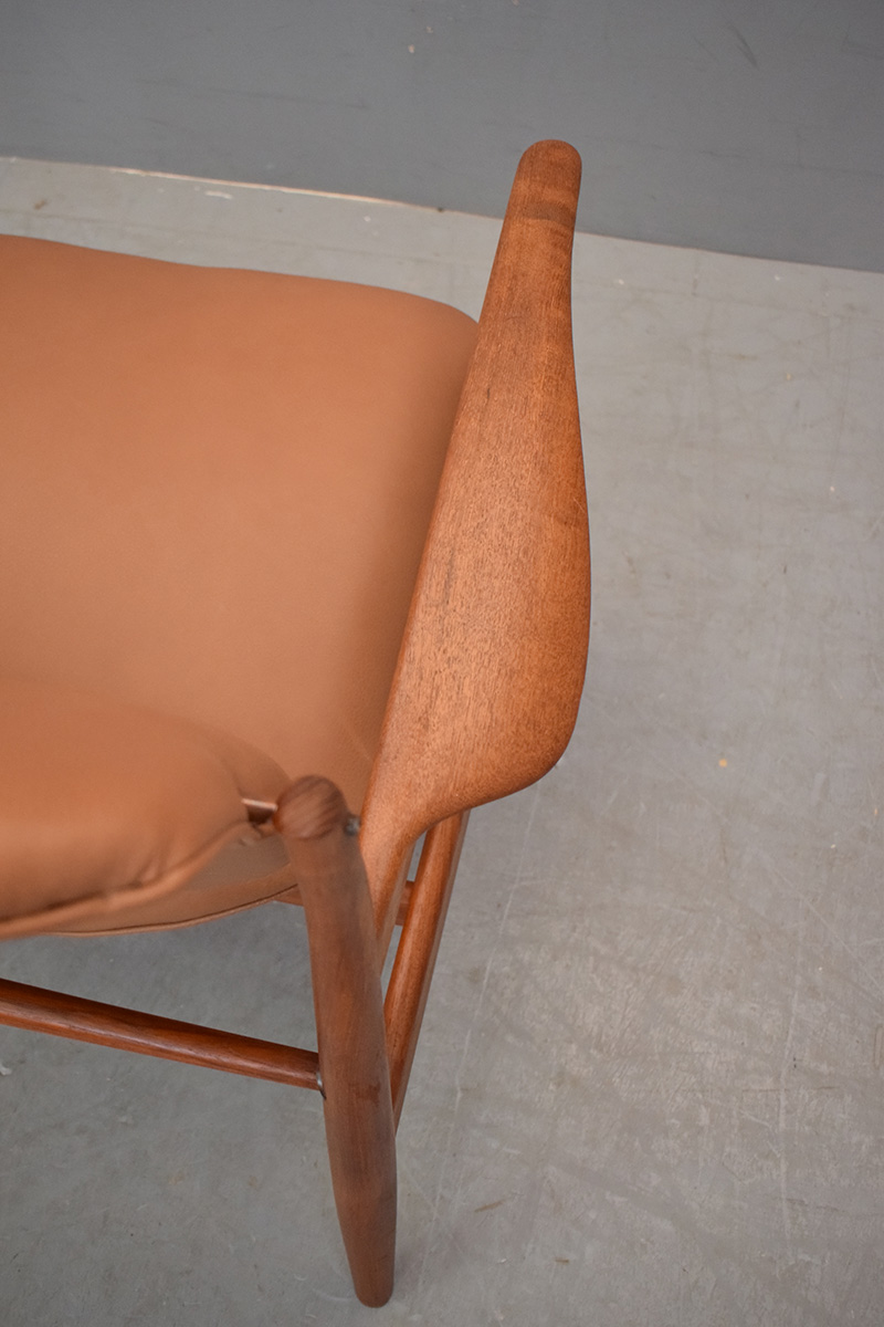 This chair bears similar design elements to Finn Juhl's most famous chair the 'Chieftan', and can be considered a junior version of the chair.