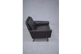 Midcentury armchair with damaged and repaired black leather designed by Folke Ohlsson for Fritz Hansen in 1962.