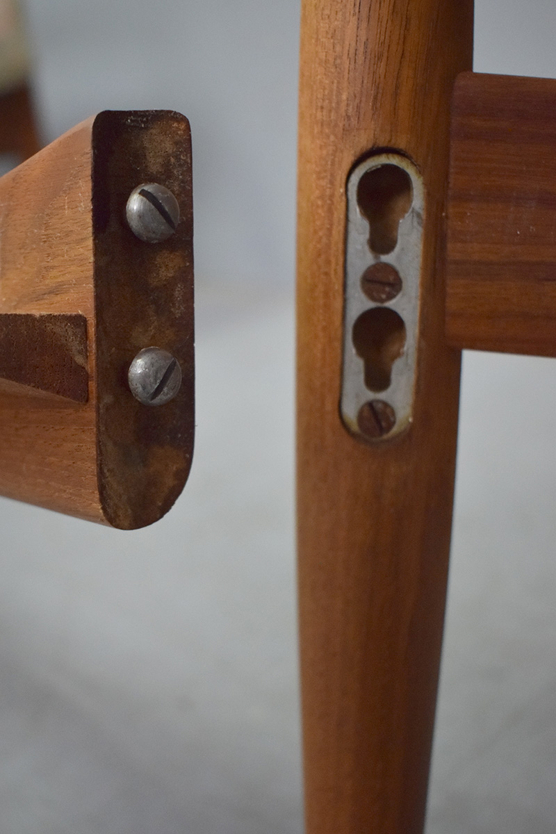 The sofa's frame can be quickly and safely dismantled with the use of a single screwdriver, for easy transport / shipping. The frame itself (aside from the sprung base) can be dismantled completely without tools, mking this a first edition model. The frame later went on to be produced with visable bolts in the sides of the frame.