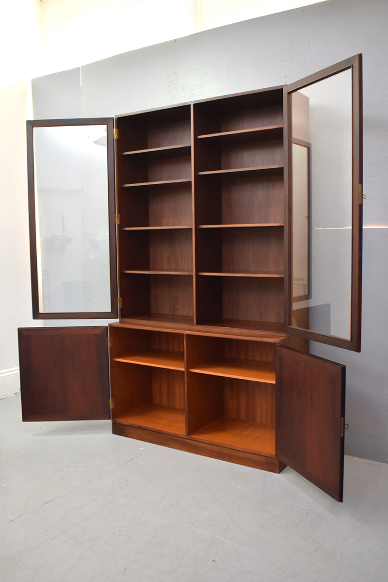 Vintage rosewood wall unit with drop front cabinet, drawers and adjustable shelving designed by Kai Winding
