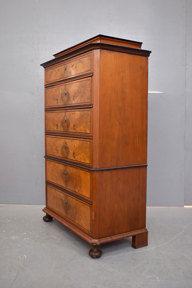 Antique 6 drawer locking chest in mahogany, walnut and pine produced in the 1850s by Danish Cabinetmaker.