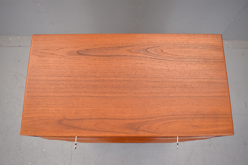The chest of drawers has 2 lockable shallow drawers intended for valuables and they lock using the same key. Each of the shallow drawers has a delightful knot in the teak making it stand out from the rest.