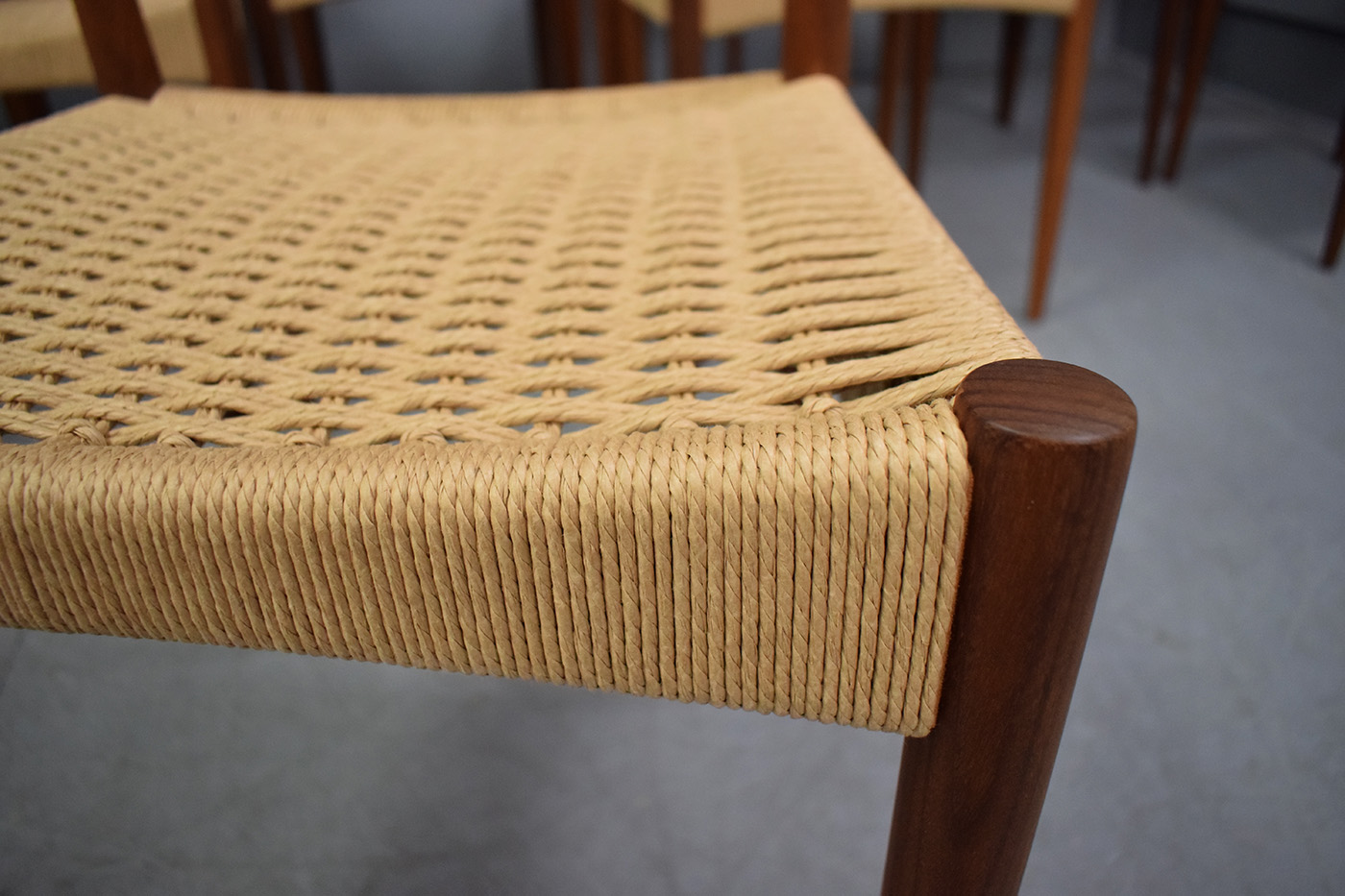 Each of the seats has been rewoven to ensure longevity. The seats are woven using a traditional danish 3-ply paper twist, which with proper care will last around 40 years!