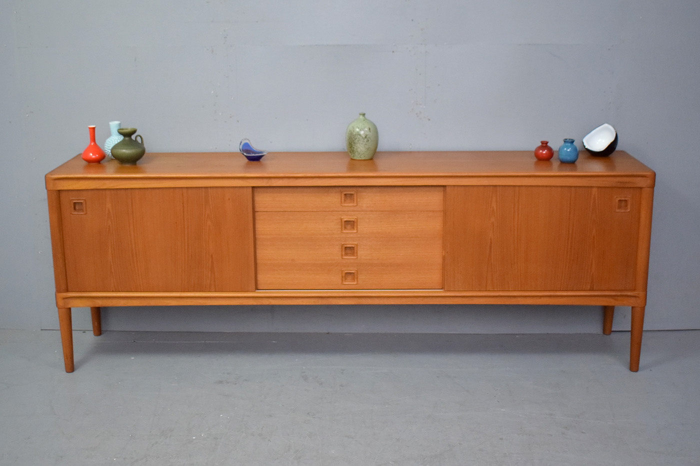 Model 273 vintage teak sideboard designed in 1968 by Henry W Klein and produced by Bramin Mobelfabrik.