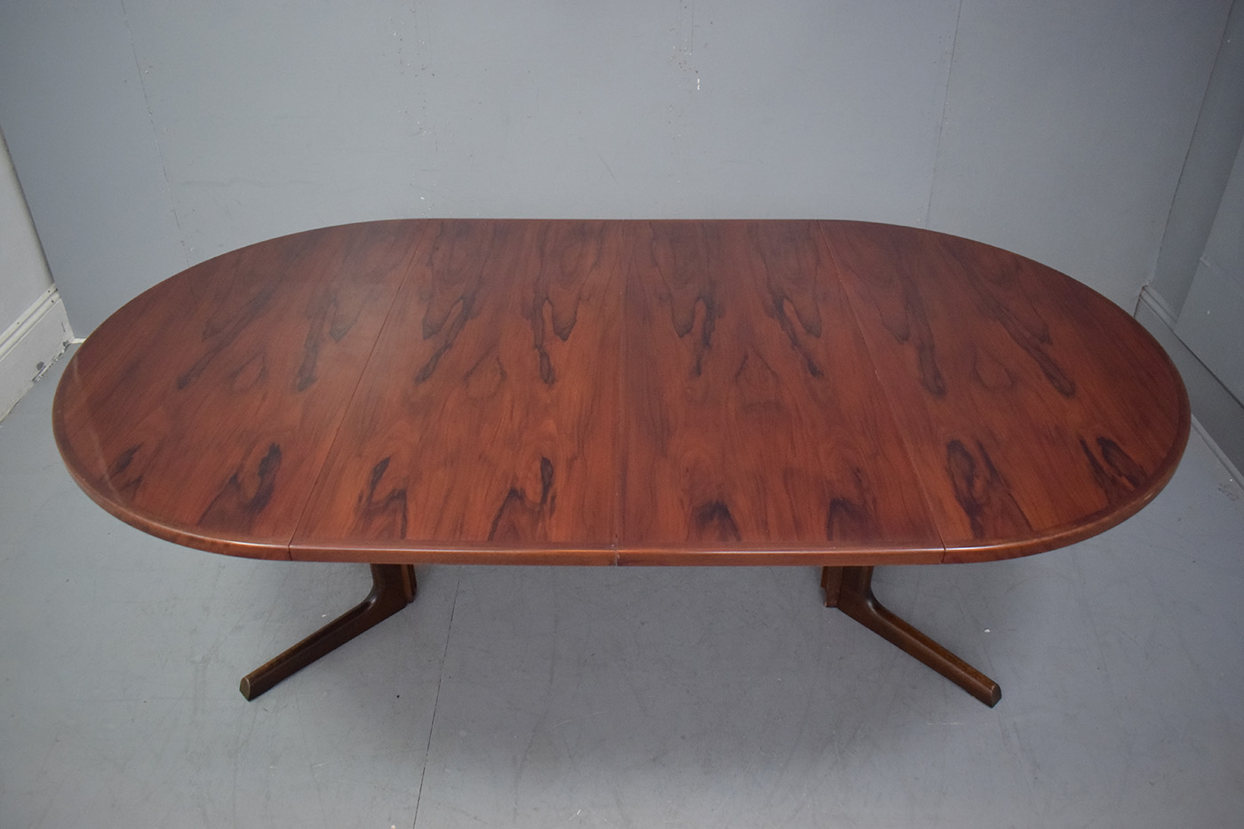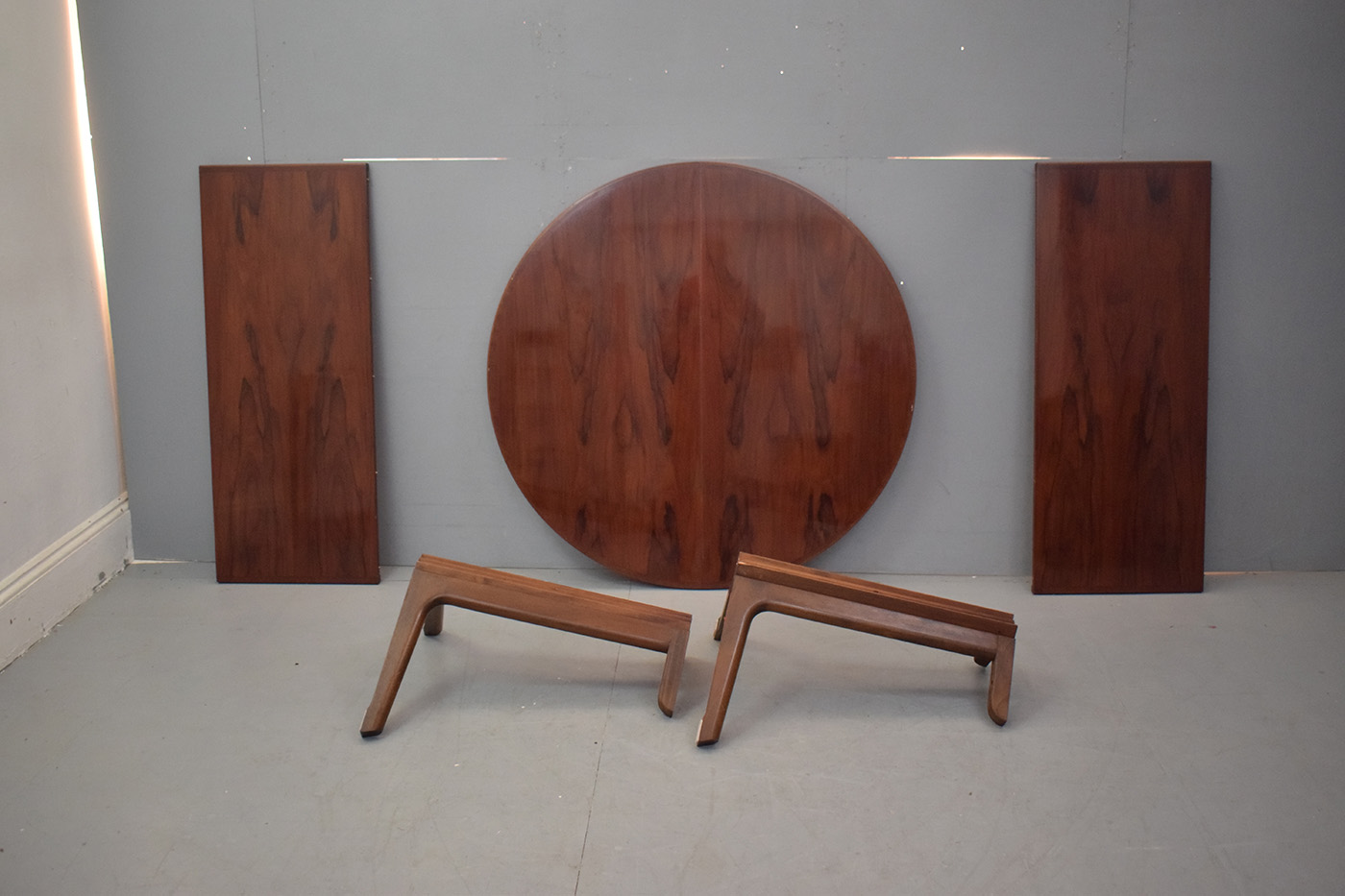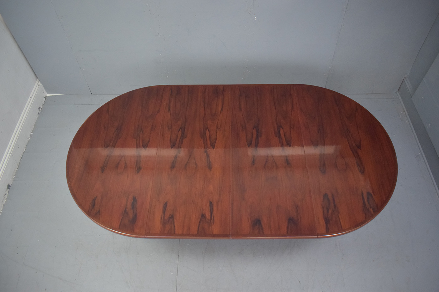 The vintage rosewood features a deep, rich colour with fantastic colour throughout. The table has a high gloss varnish finish, as it was re-varnished by the previous owner.