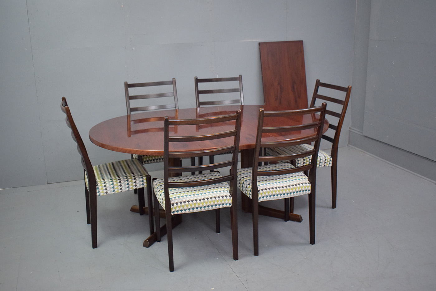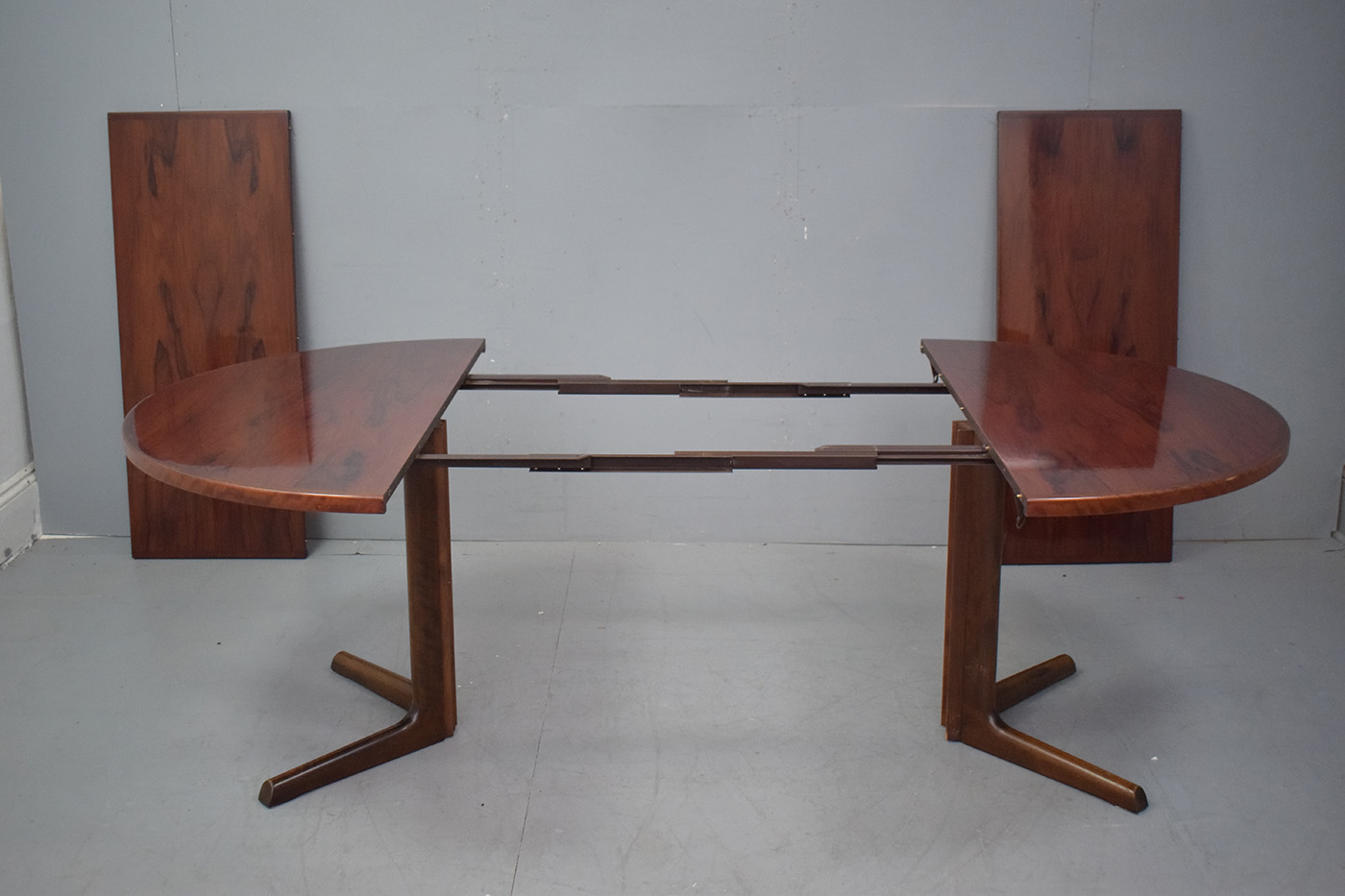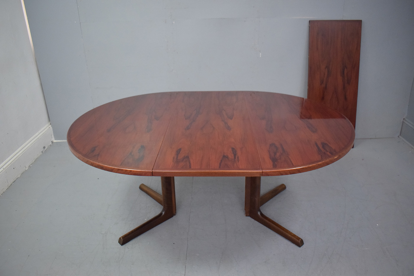 The vintage rosewood features a deep, rich colour with fantastic colour throughout. The table has a high gloss varnish finish, as it was re-varnished by the previous owner.