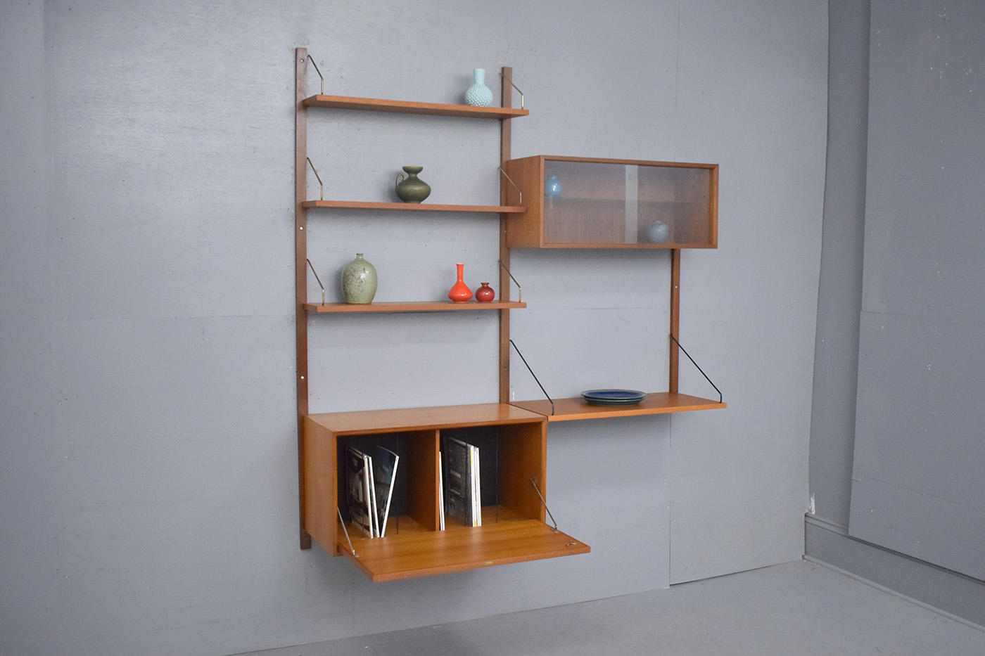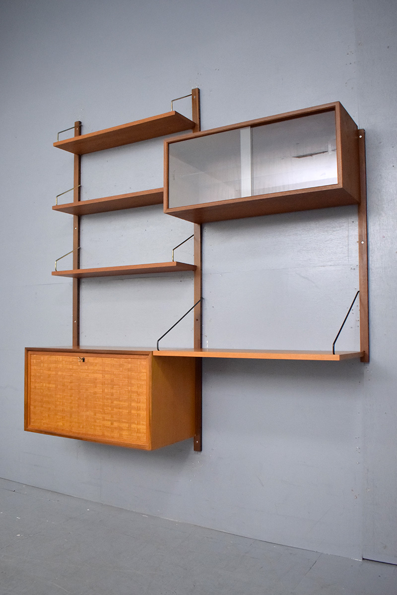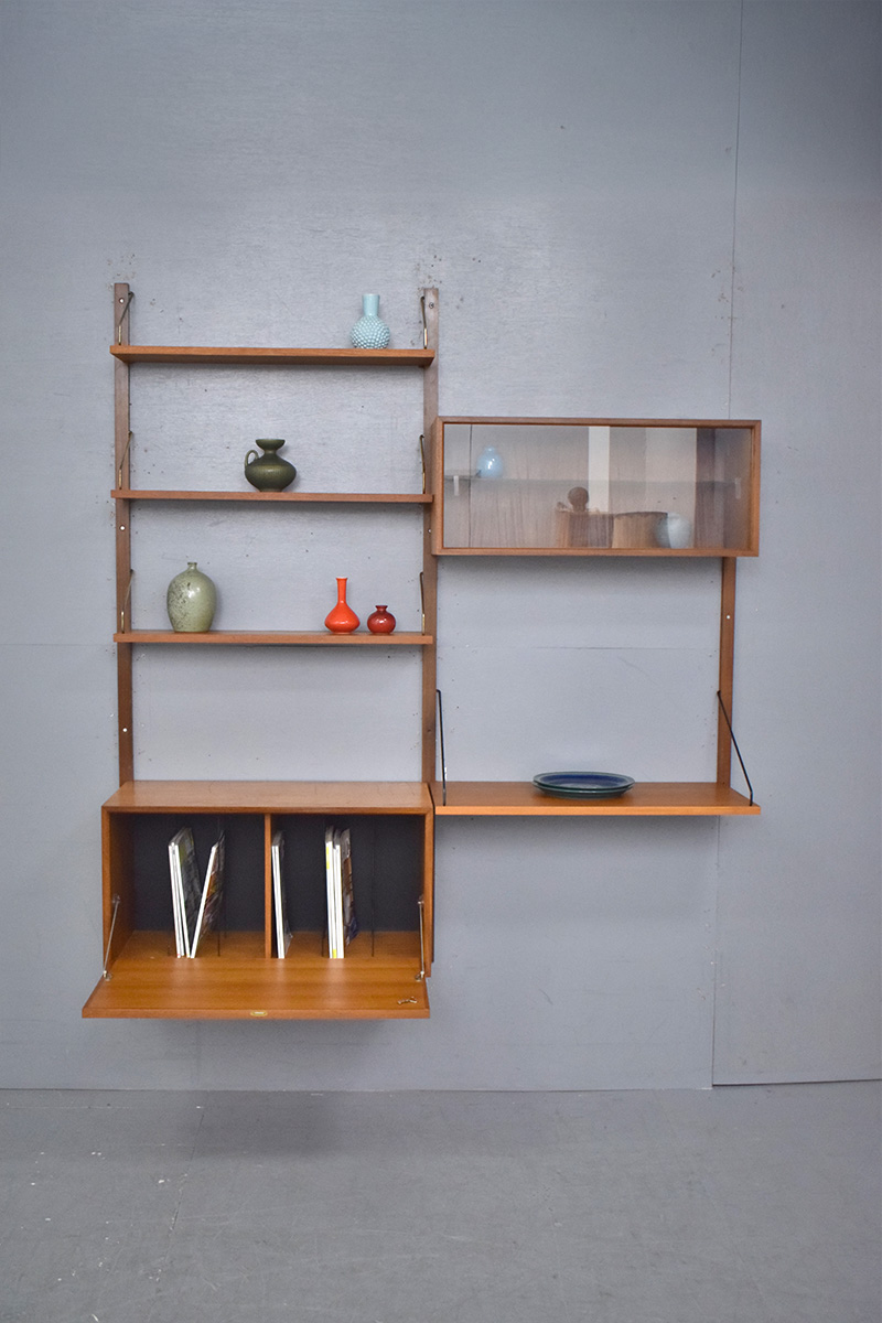 Vintage teak 2 bay modular storage system designed in 1947 by Poul Cadovius produced by ROYAL.
