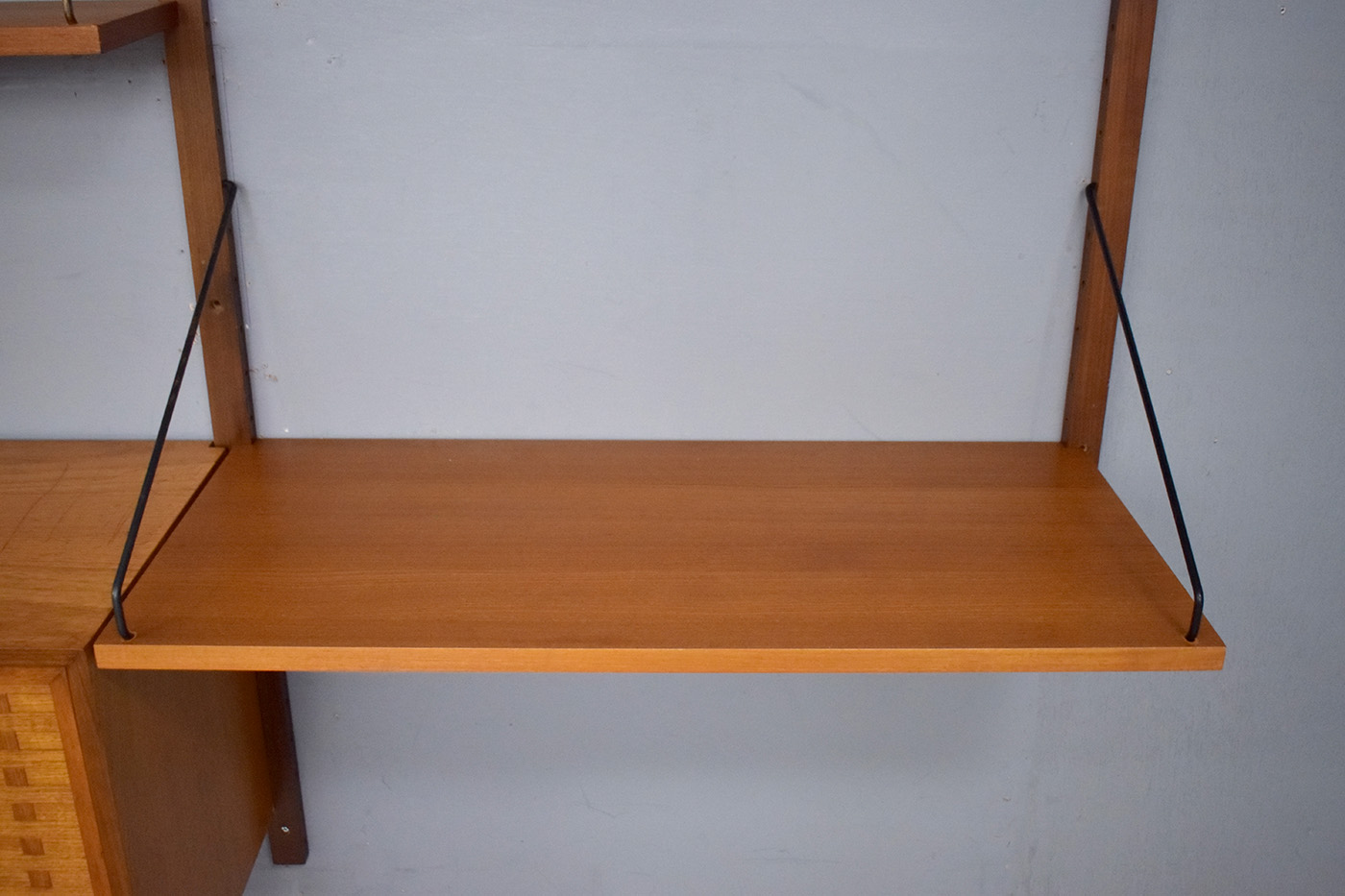 The ROYAL system features a fully modular design, making use of the holes in the sides of the teak uprights allowing you to place cabinets and shelves to best suit your needs.