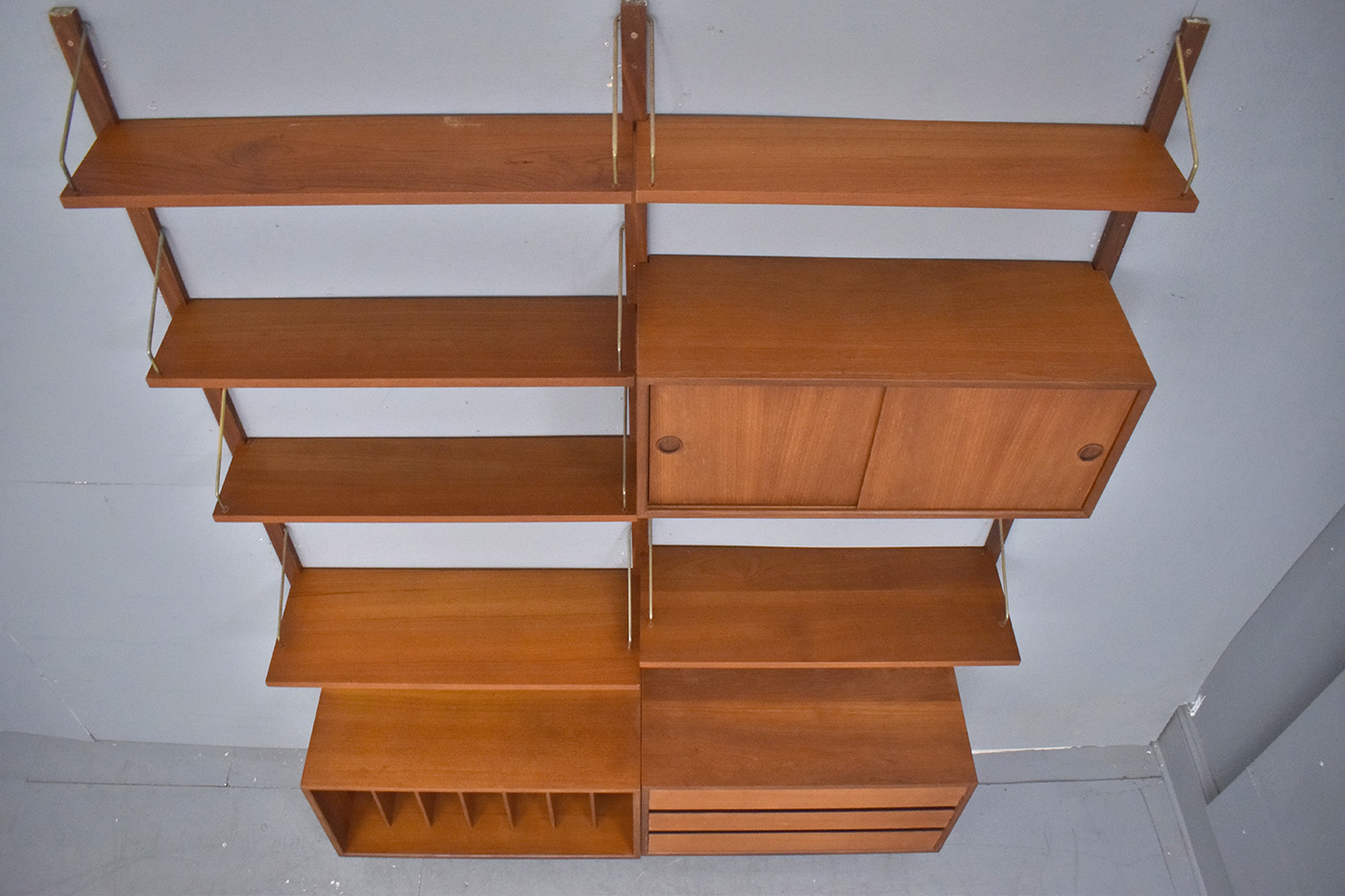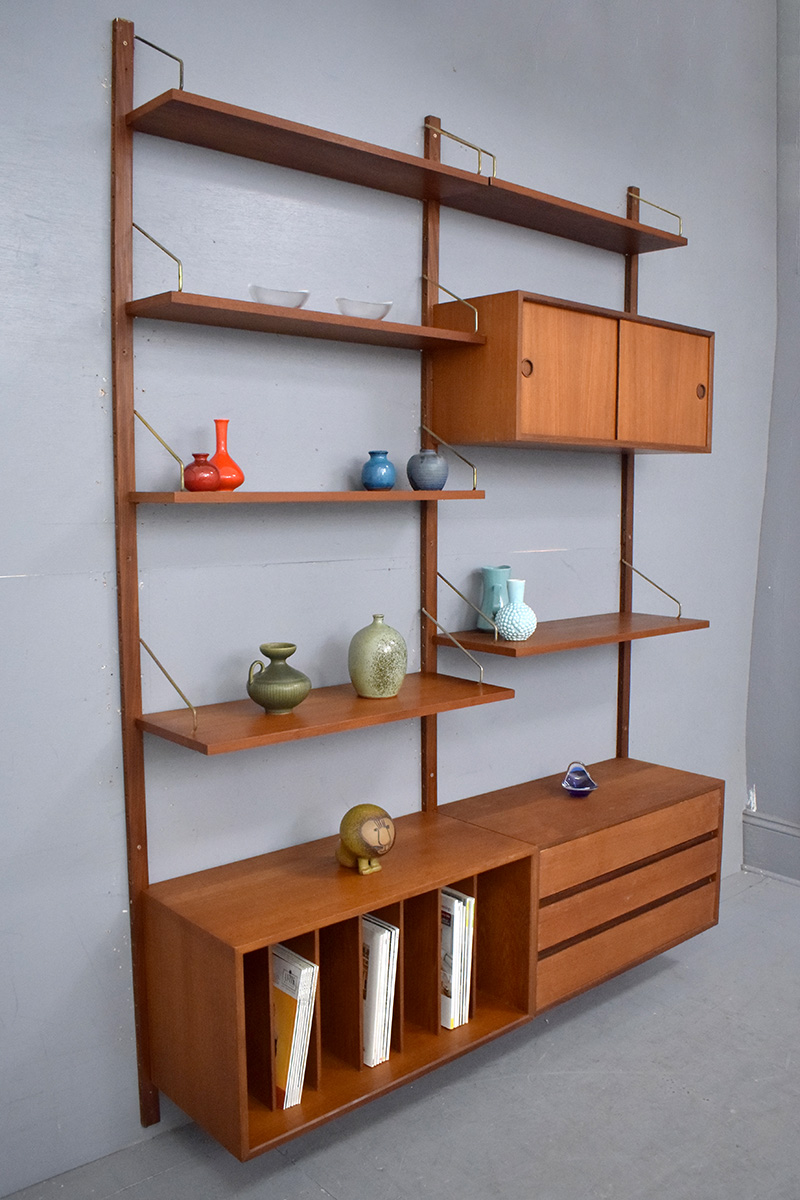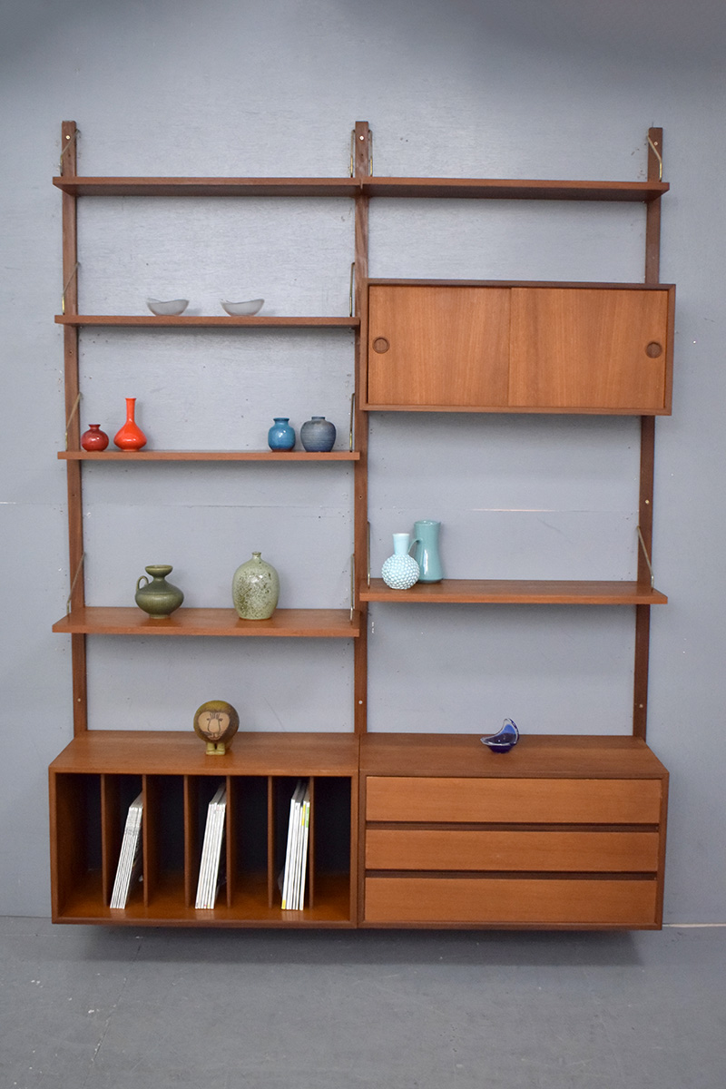 1947 Poul Cadovius design wall mounted modular ROYAL System in vintage teak.