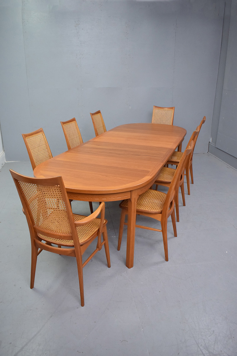 Rare set of 8 vintage teak dining chairs designed by Niels Koefoed and produced by Koefoeds Mobelfabrik 1966 model LIS.