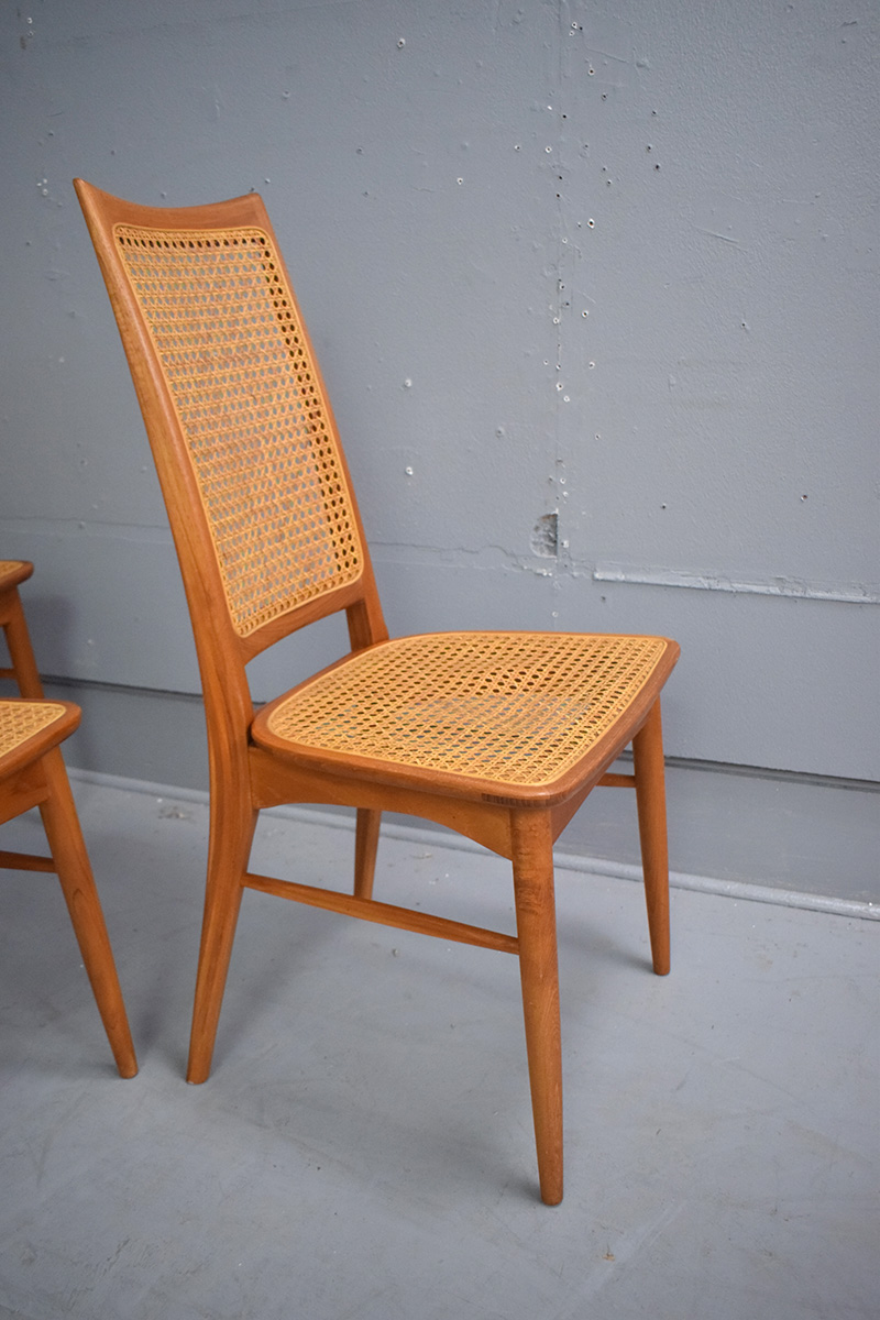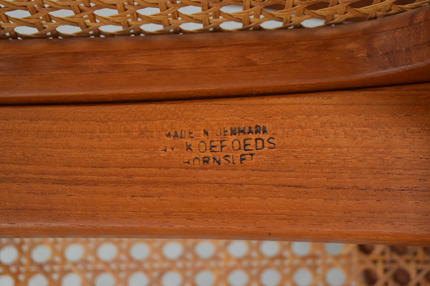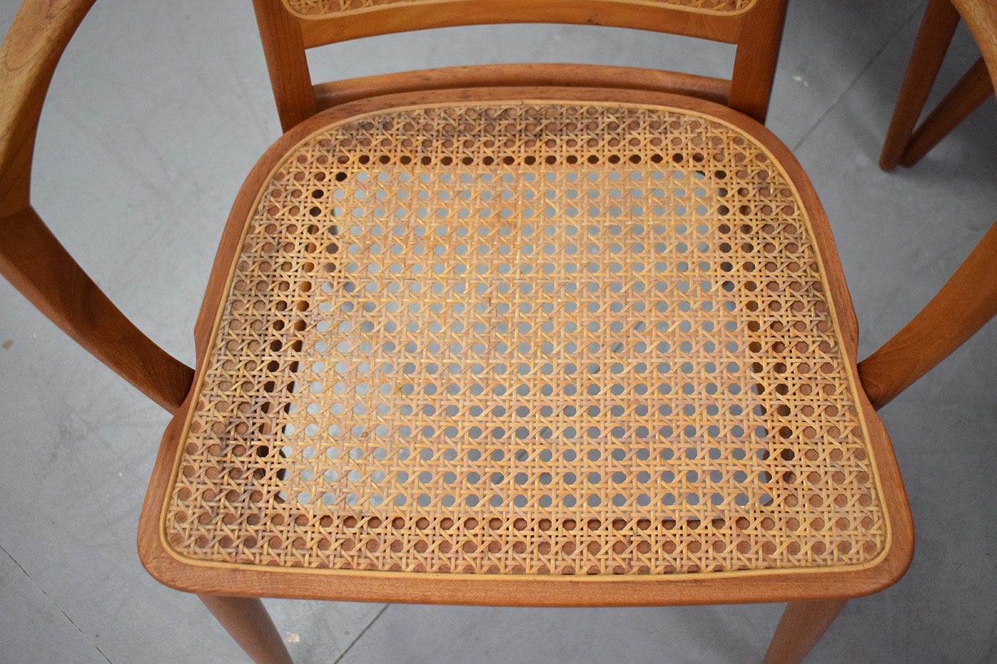 This lovely dining chair offers excellent seating comfort with lots of back support in a sturdy and strong frame that has been uniquely constructed in a mix of laminated and solid teak. Woven cane panels make the back support and seat and is original for this version of the LIS chairs as you can see from the Koefoeds catalogue page.