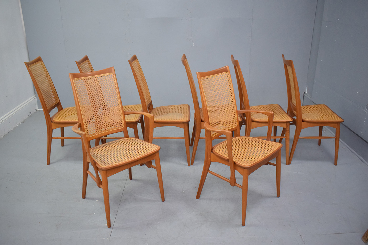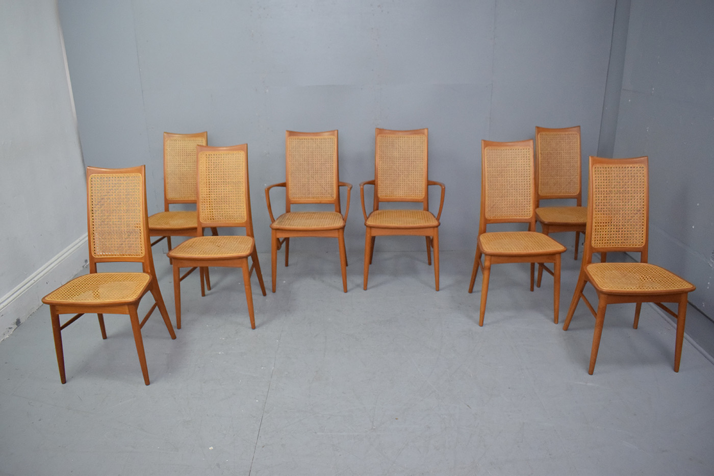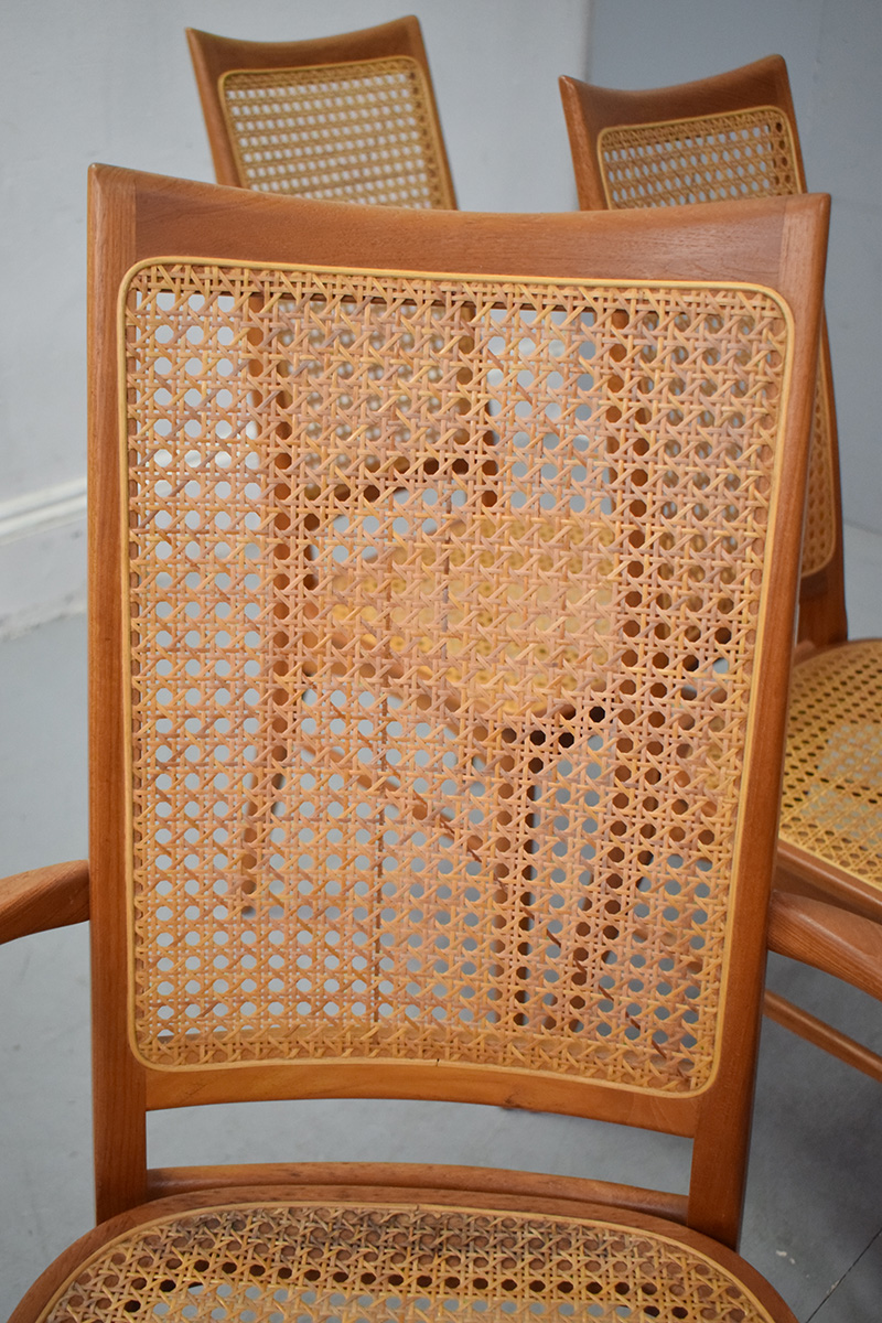 The chair was available with full cane or seat upholstered. This set of chairs have the cane seat but the cane has got broken in a few places across all the seats.