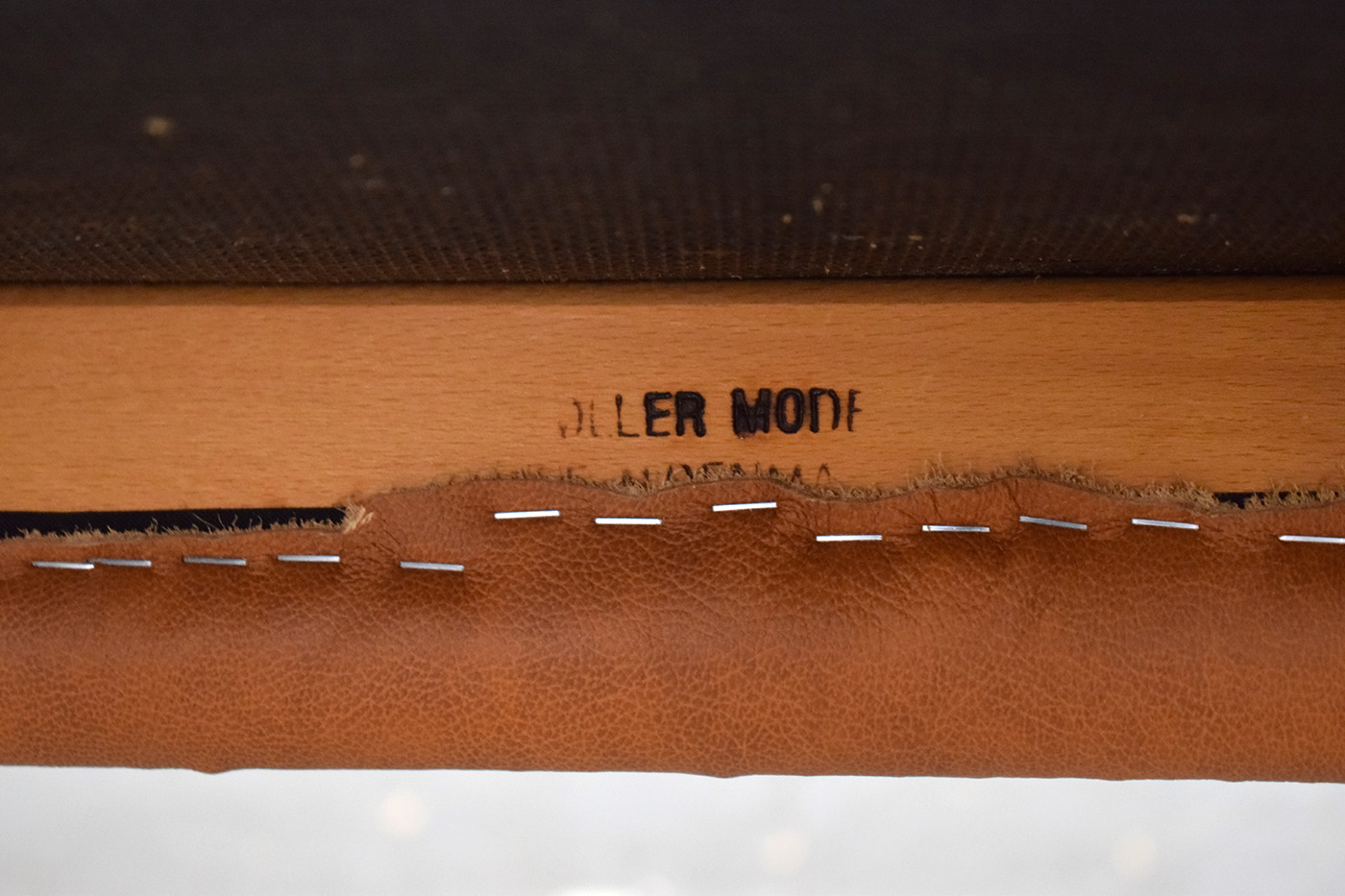 The seats are upholstered in Austen - Bourbon from Crest Leather. The leather has a lovely, rich caramel tone which perfectly compliments the grain of the rosewood frames.