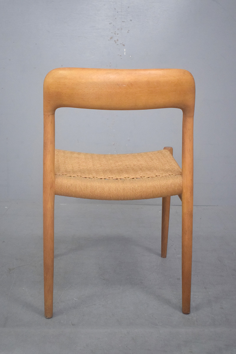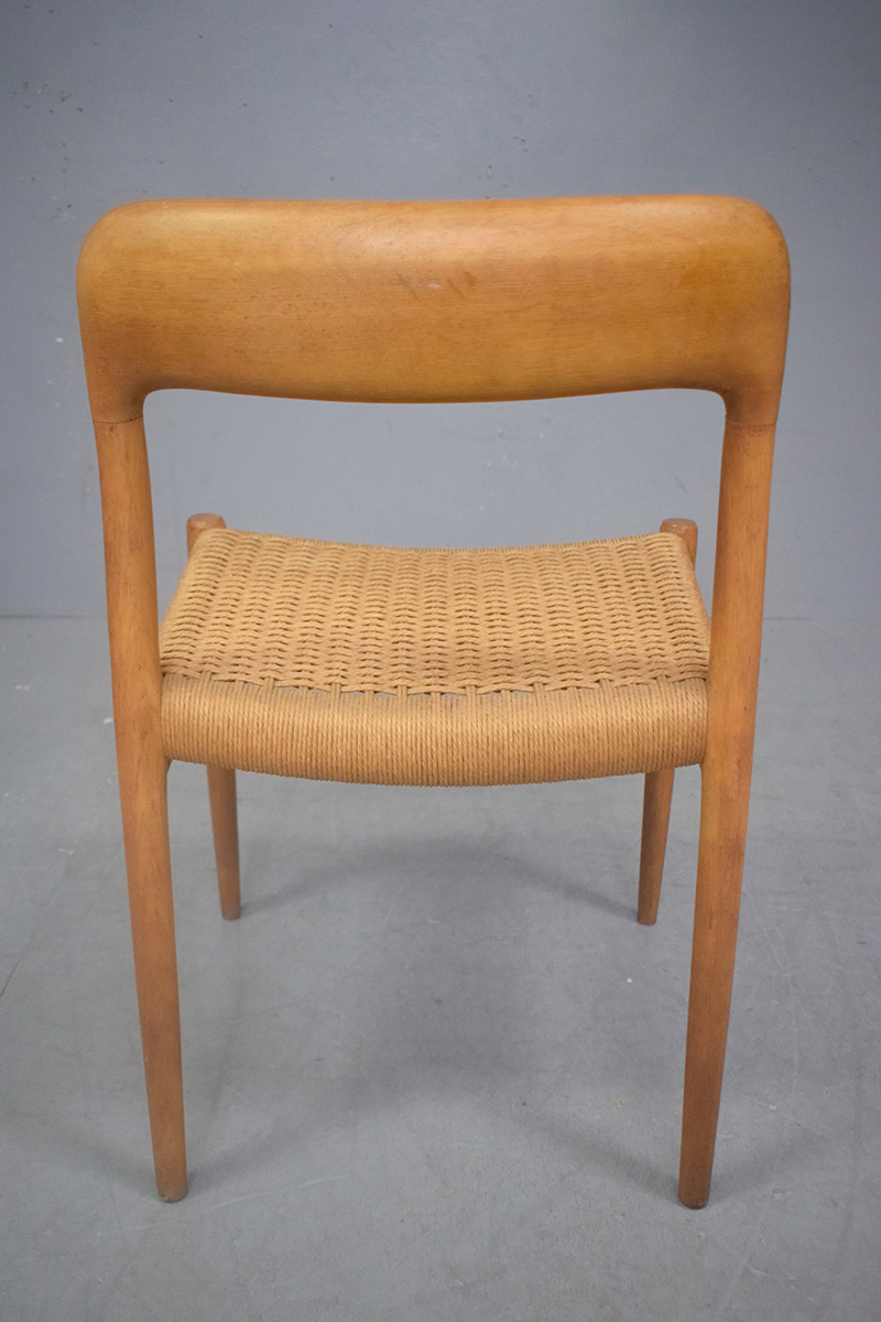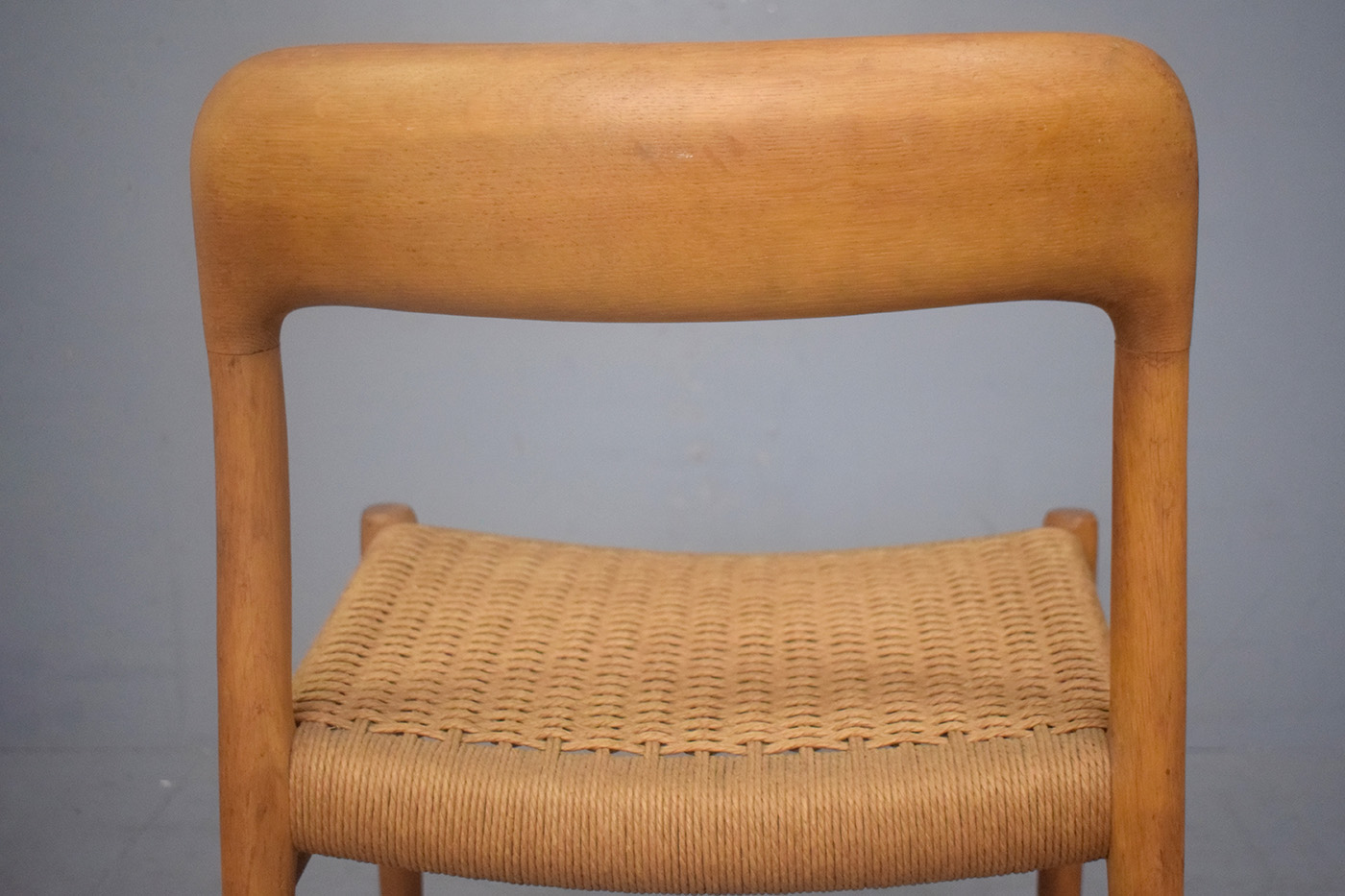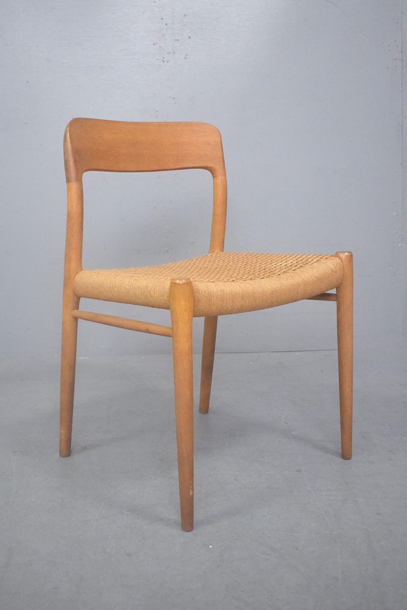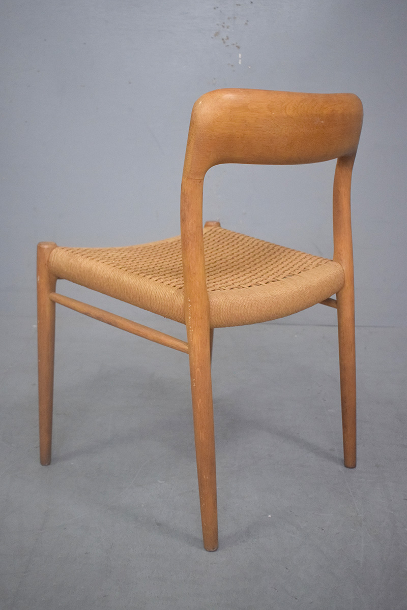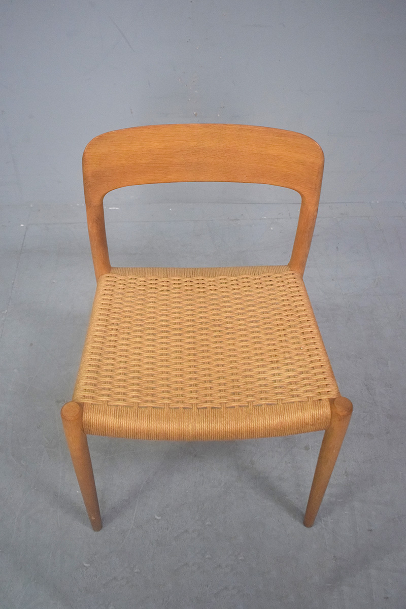 Vintage oak dining chair model 75 designed 1954 by Niels Moller and produced by J L Mollers Mobelfabrik.