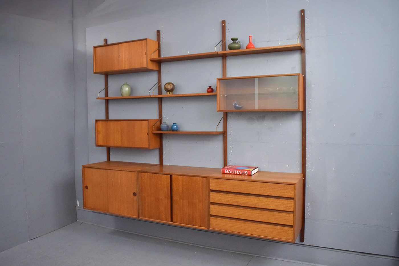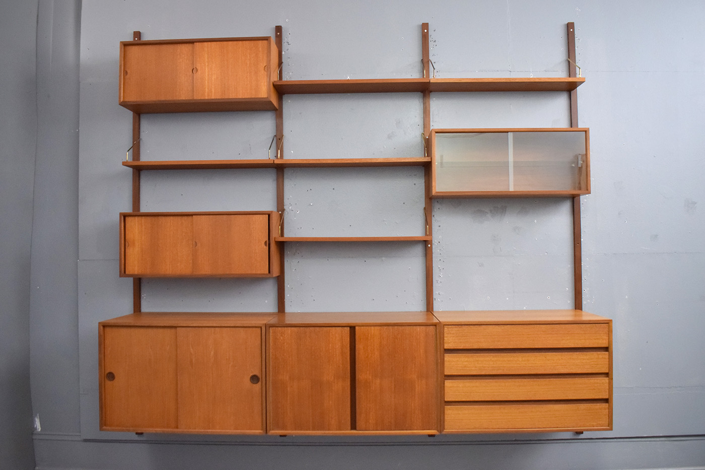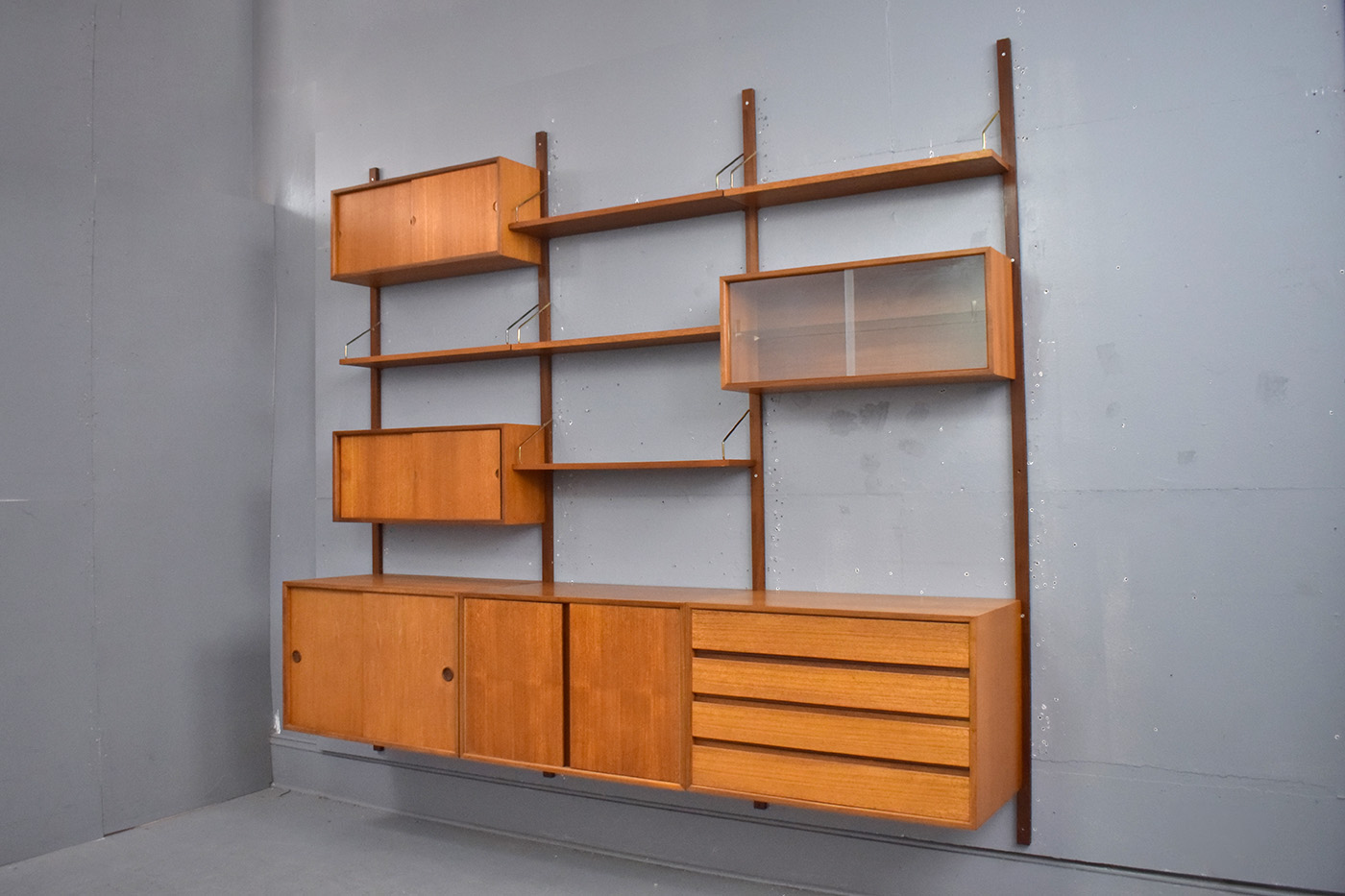 1947 Poul Cadovius design wall mounted modular ROYAL System in vintage teak.