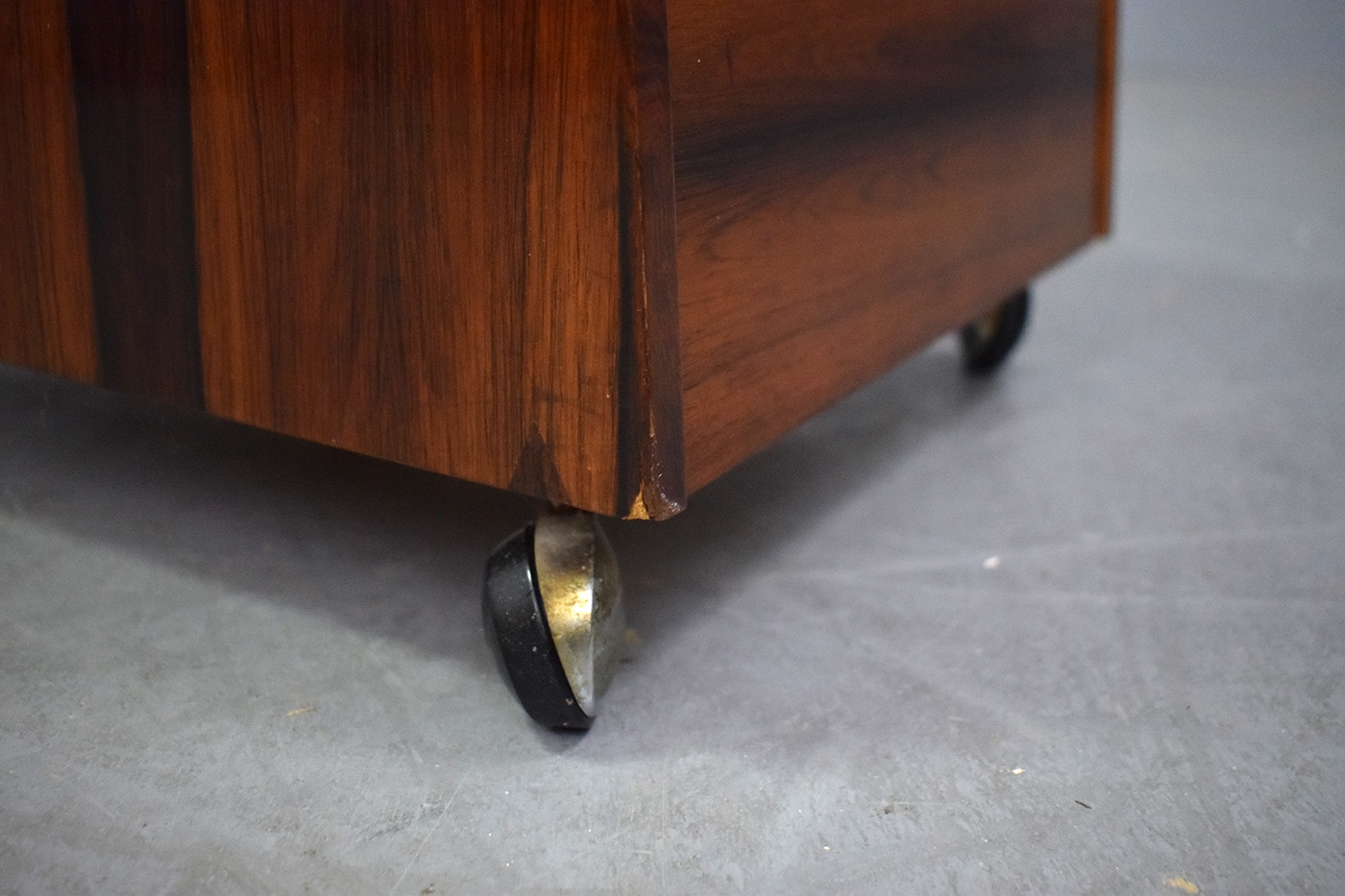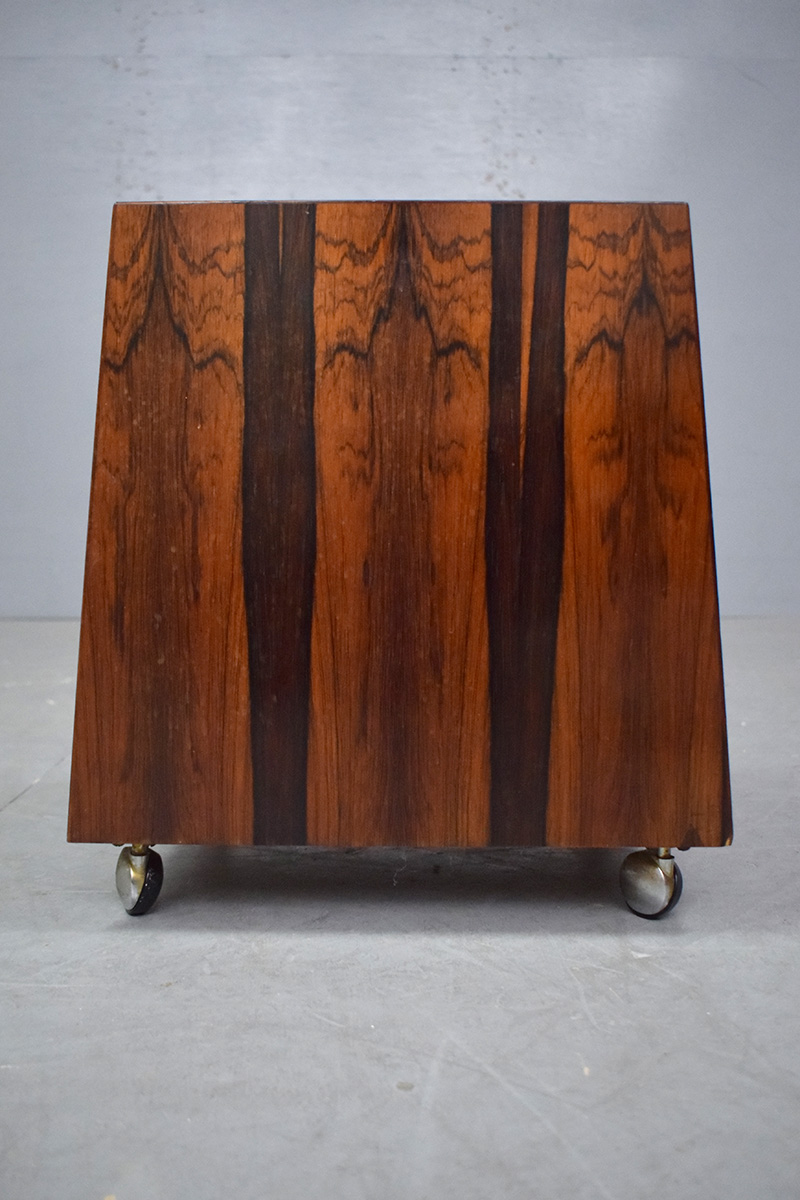 The vintage rosewood construction is beautifully eye-catching, showing gorgeous patina and rich red tones throughout. Each side of the unit features book-matched rosewood grain, creating a striking look.