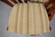 Set of 4 dining chairs in vintage teak in striped beige and green wool upholstery with pivoting back rest and elbow supports, designed by Kai Kristiansen, 1956 for Sv Andersen Mobler.