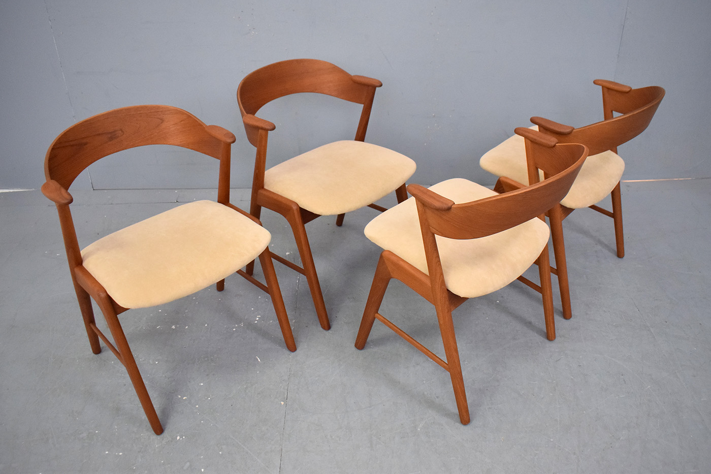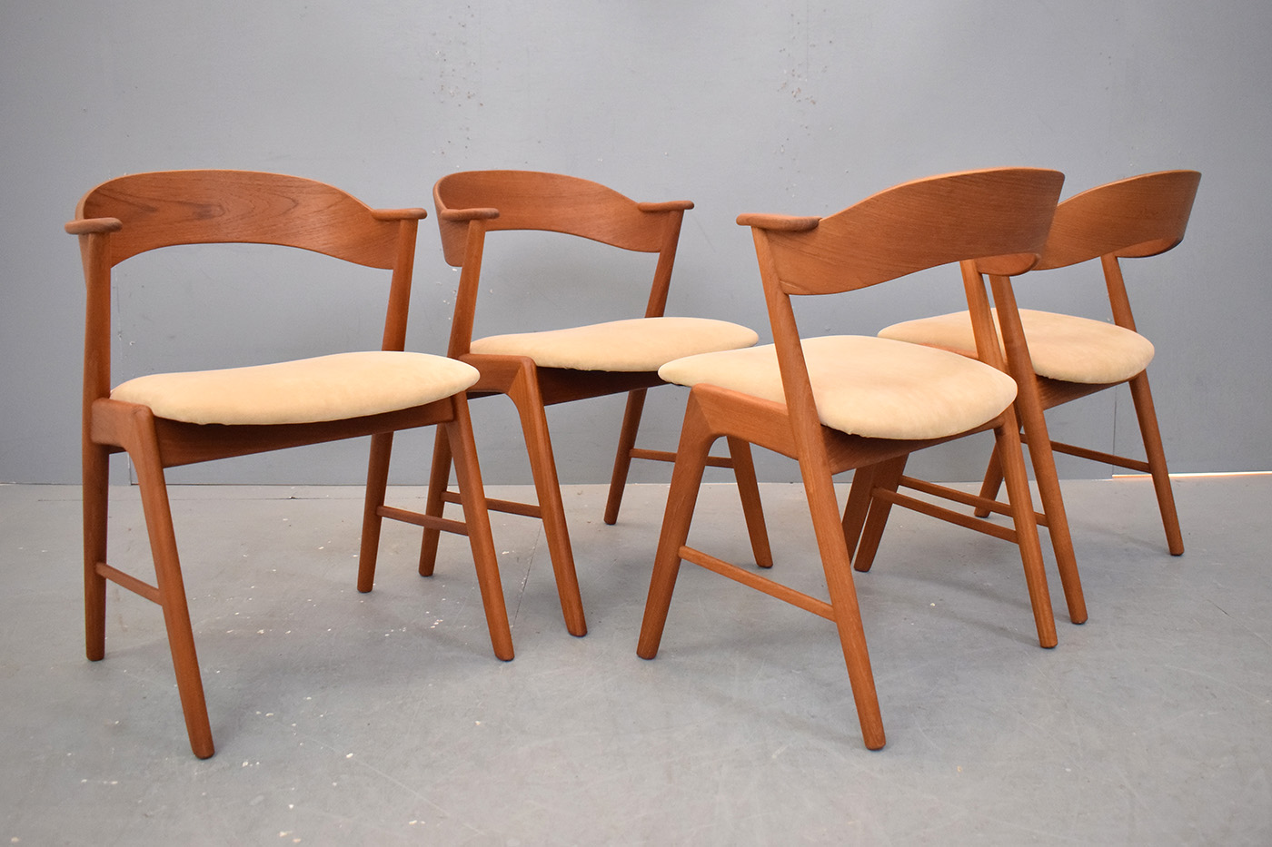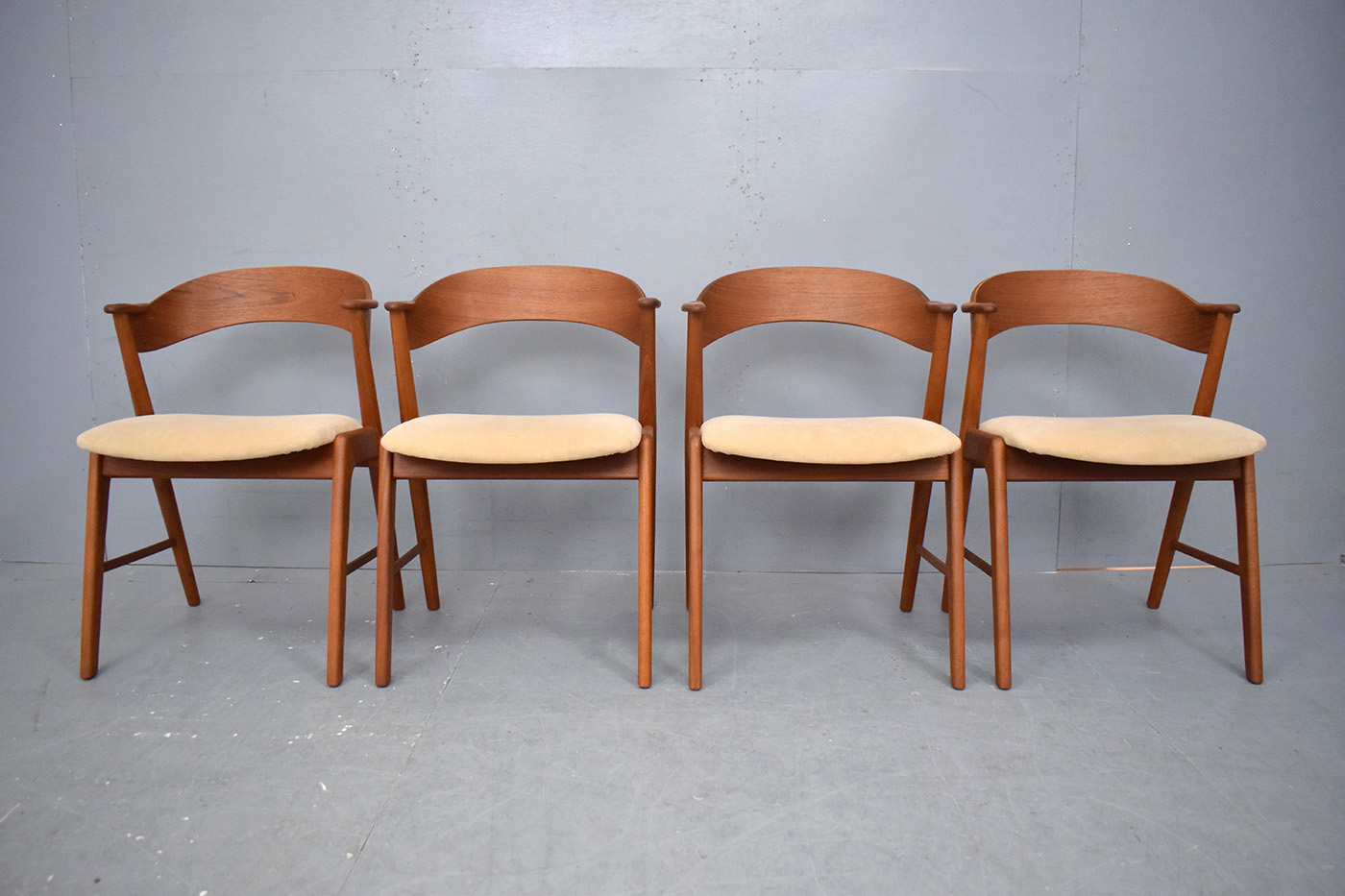 Midcentury Danish design set of 4 vintage teak dining chairs produced 1950s by Korup Stolefabrik.