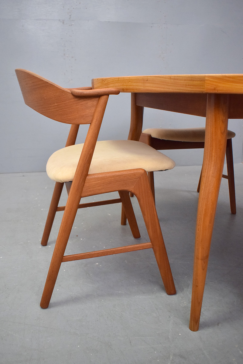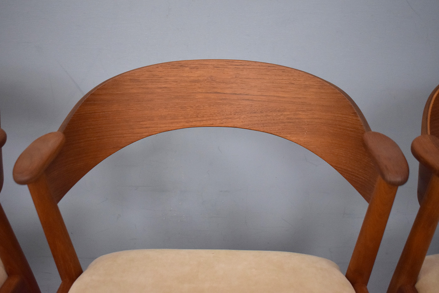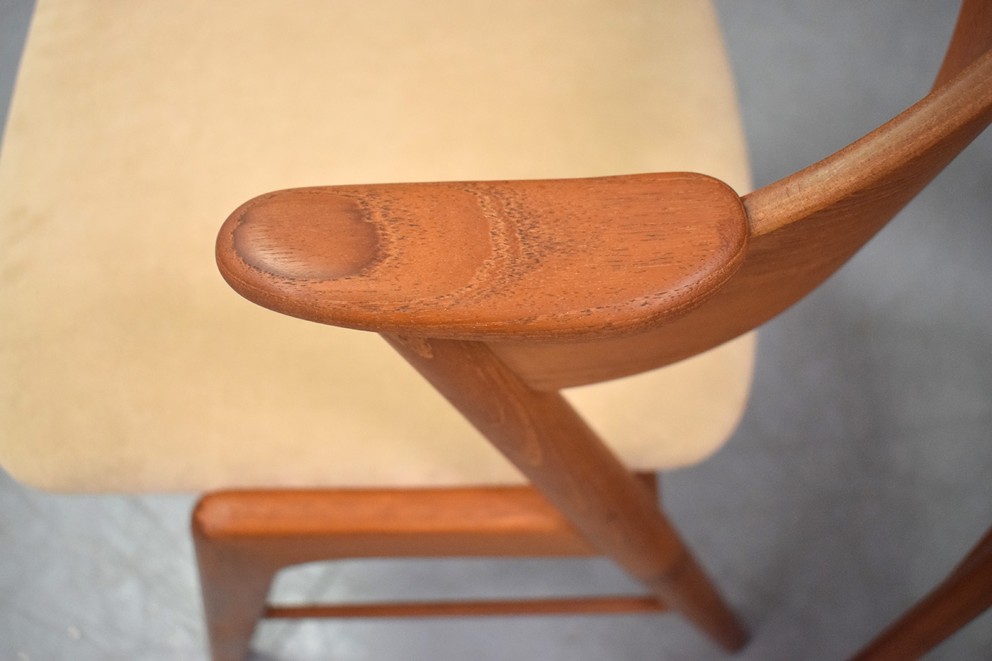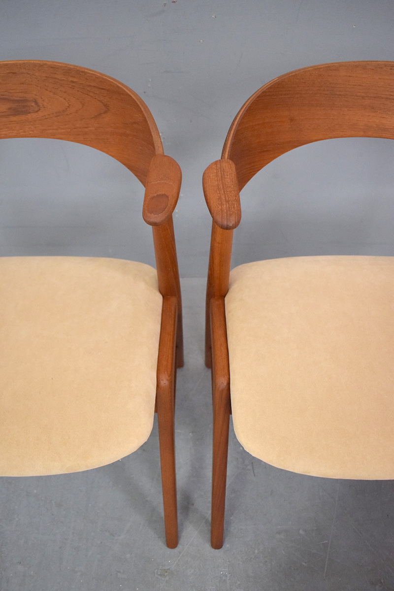 Midcentury Danish design set of 4 vintage teak dining chairs produced 1950s by Korup Stolefabrik.