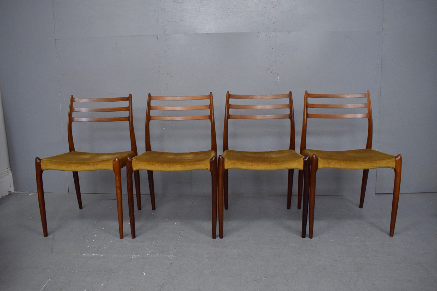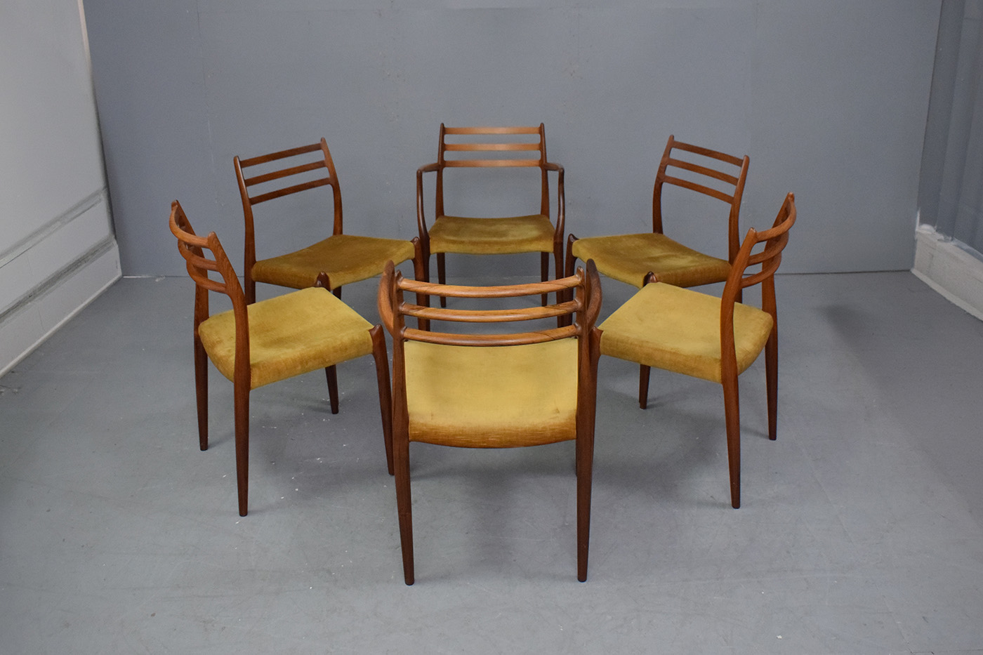 The chairs can be re-upholstered or rewoven by us here at Danish Homestore, choose from a variety of fabrics, leathers, papercord or flat woven seats. This will only improve these dining chais and make them truly yours!