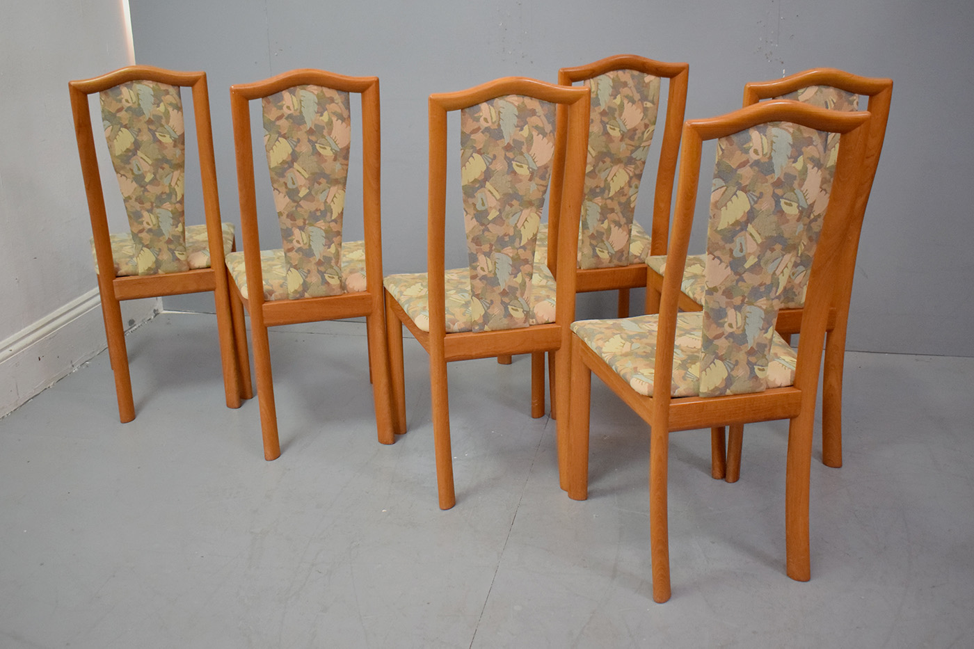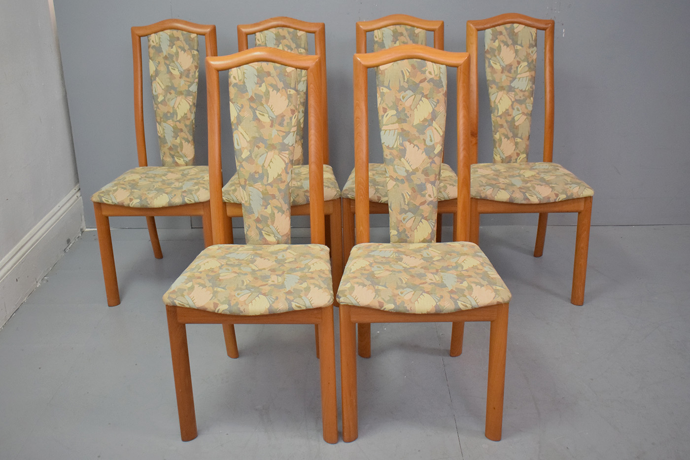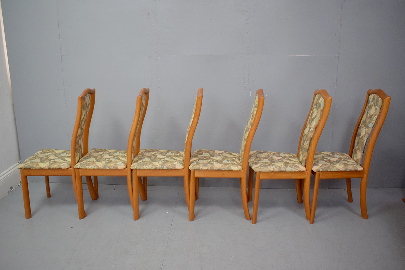 The chairs have the origina Skovby upholstery which is a multi coloured floral pattern. The fabric is clean and unmarked on all chairs.