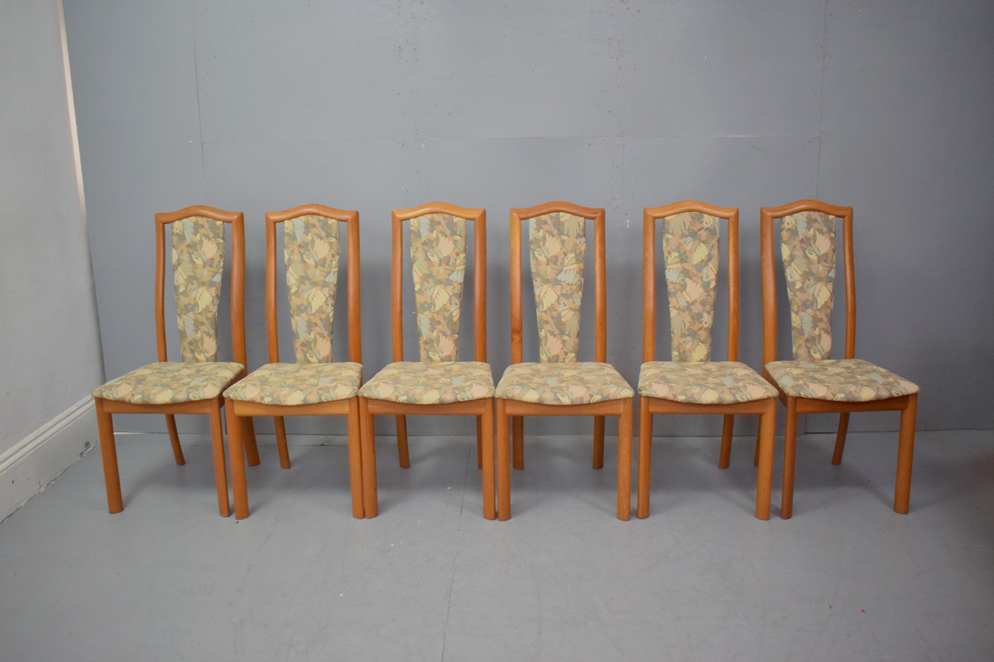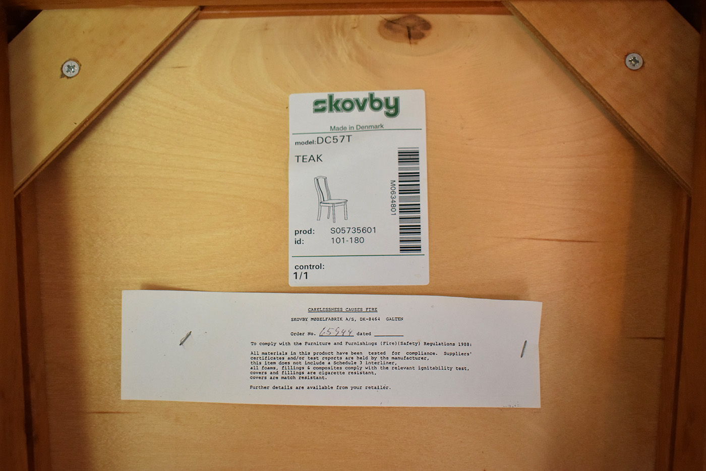 Set of 6 dining chairs in teak with high back model DC57 produced by Skovby, Denmark.