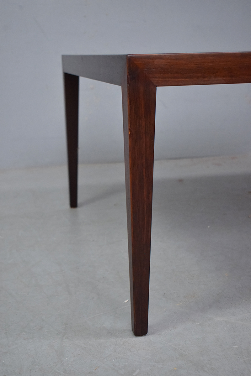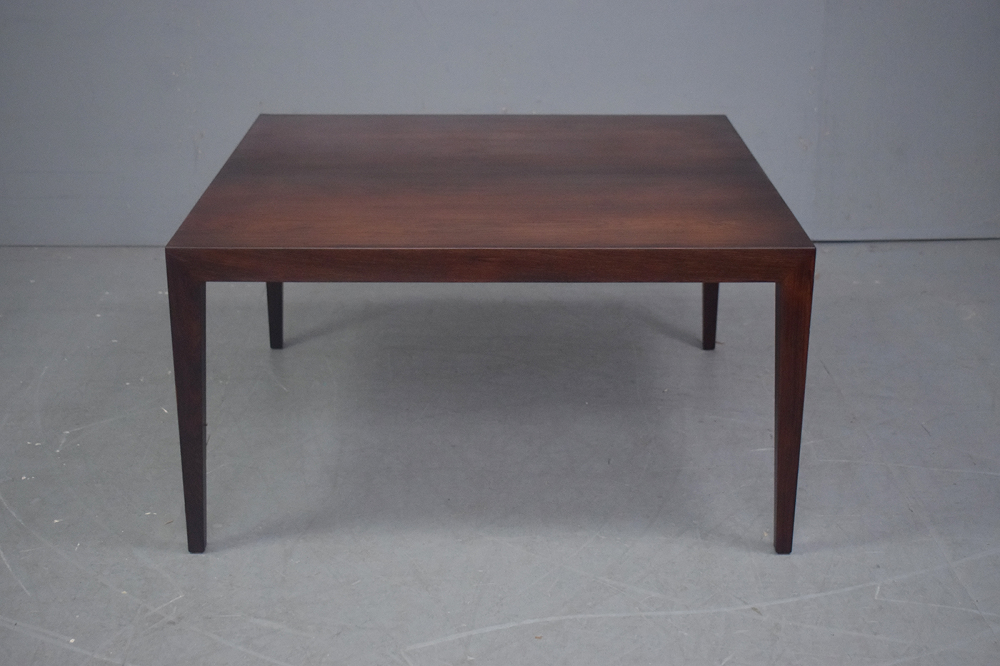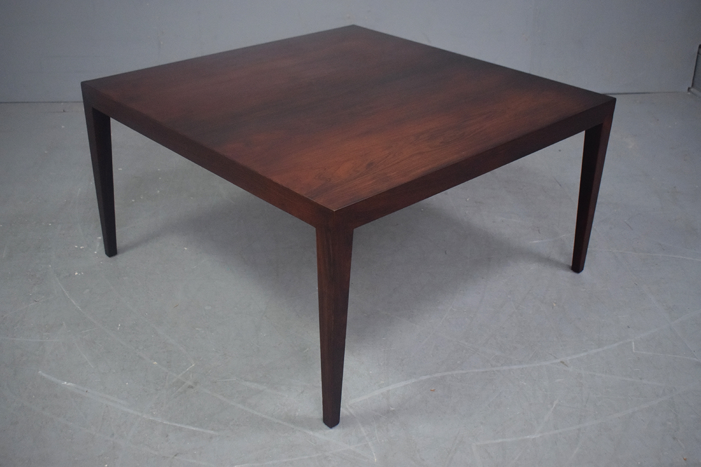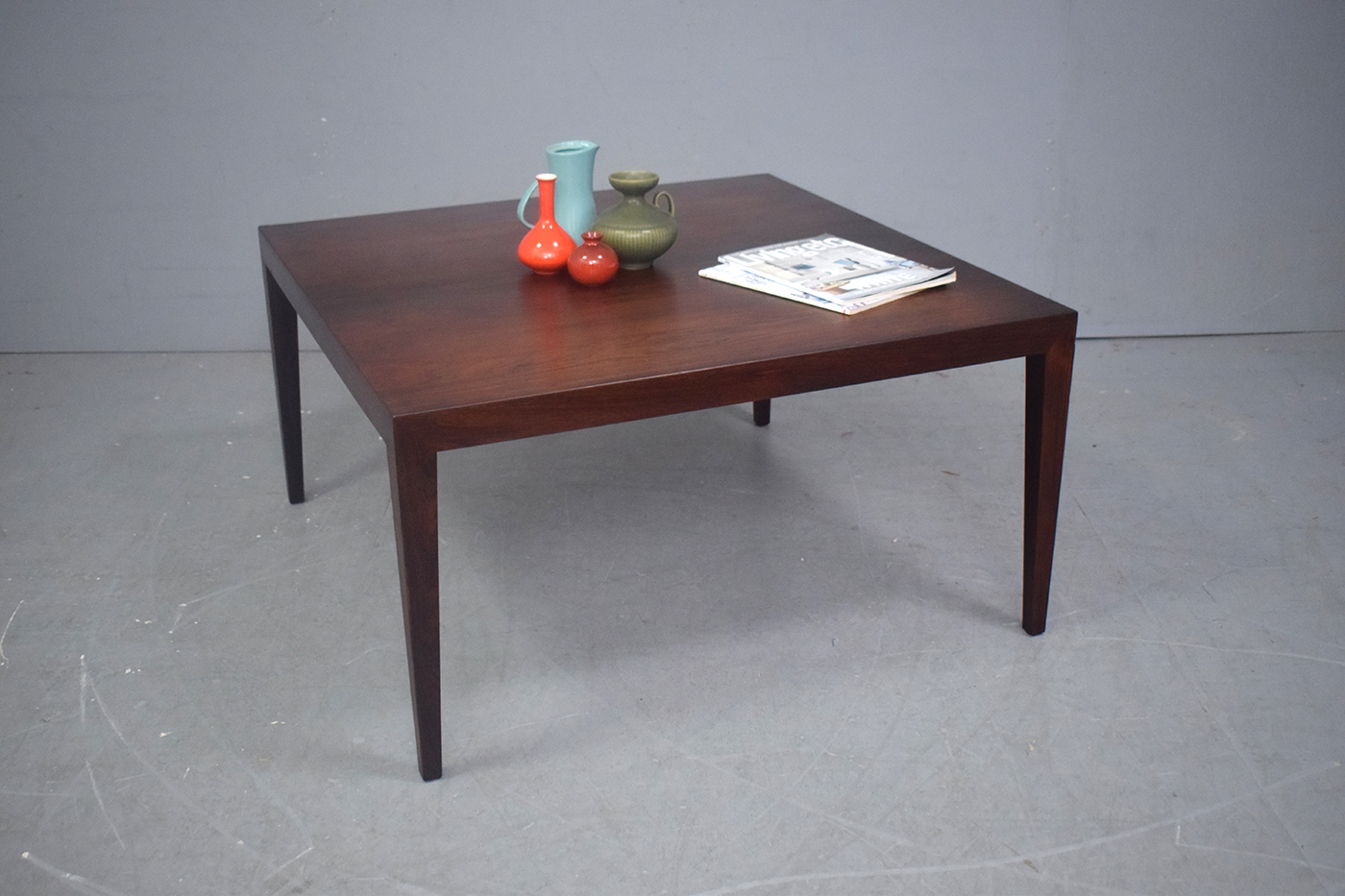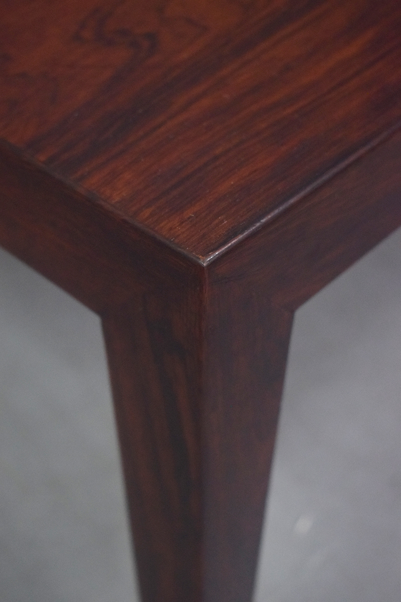This stunning square top coffee table is the pinnacle of minimalist midcentury Danish design, with a slender, robust form which lets the rosewood grain and patina truly stand out.
