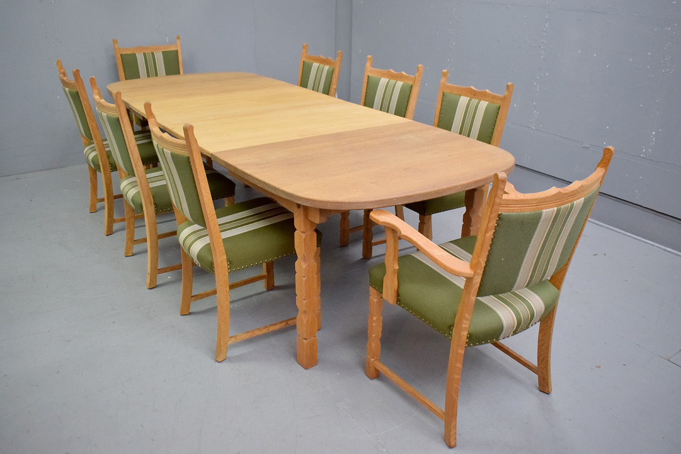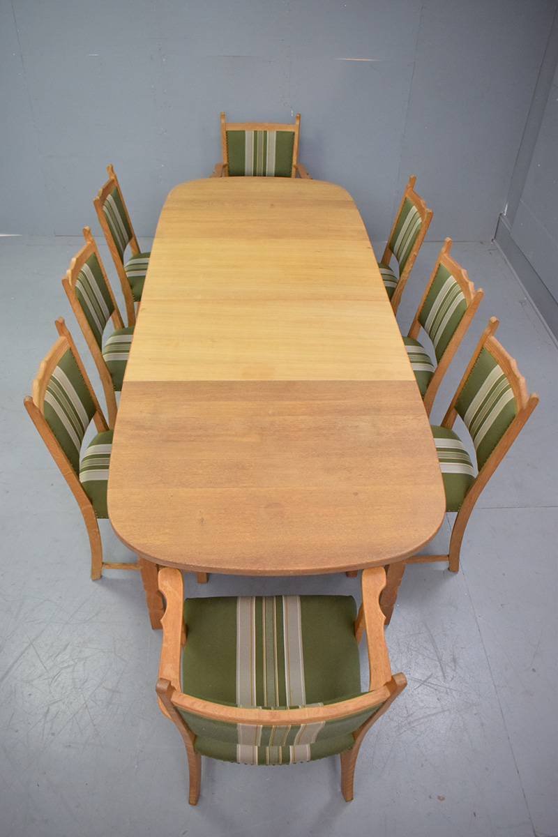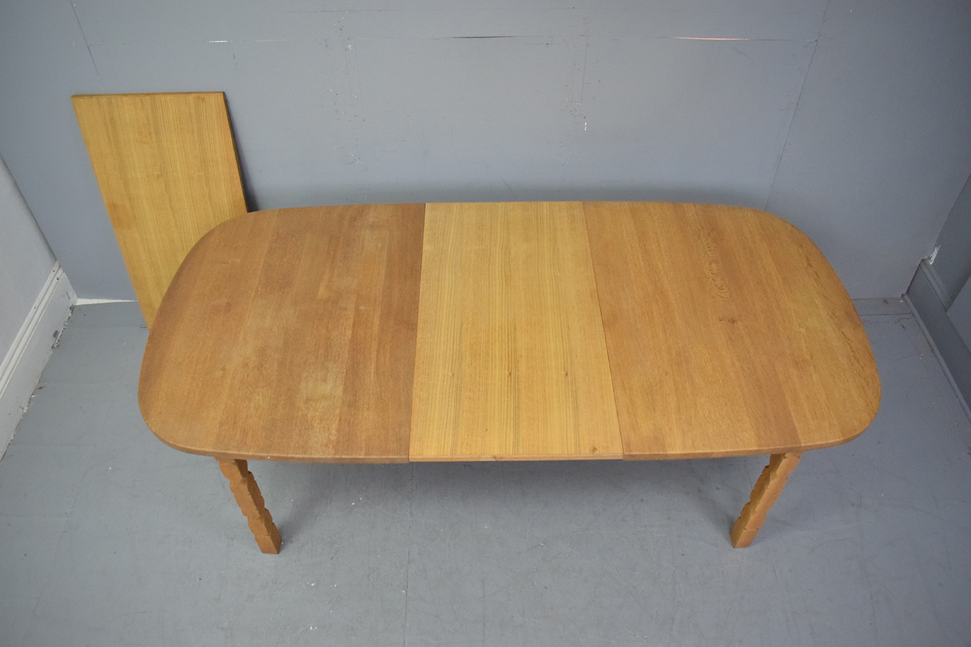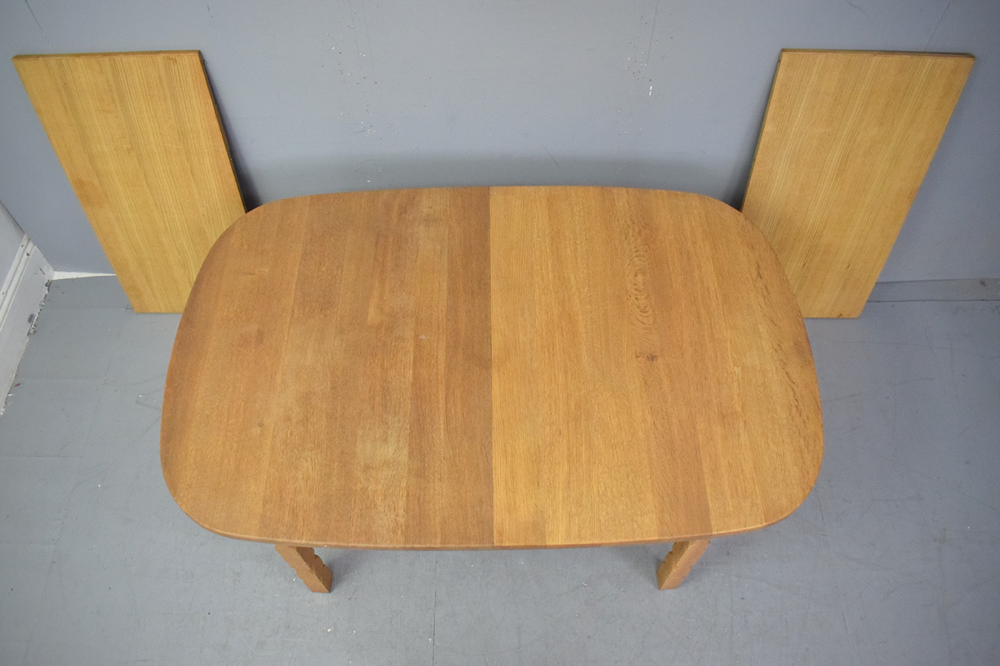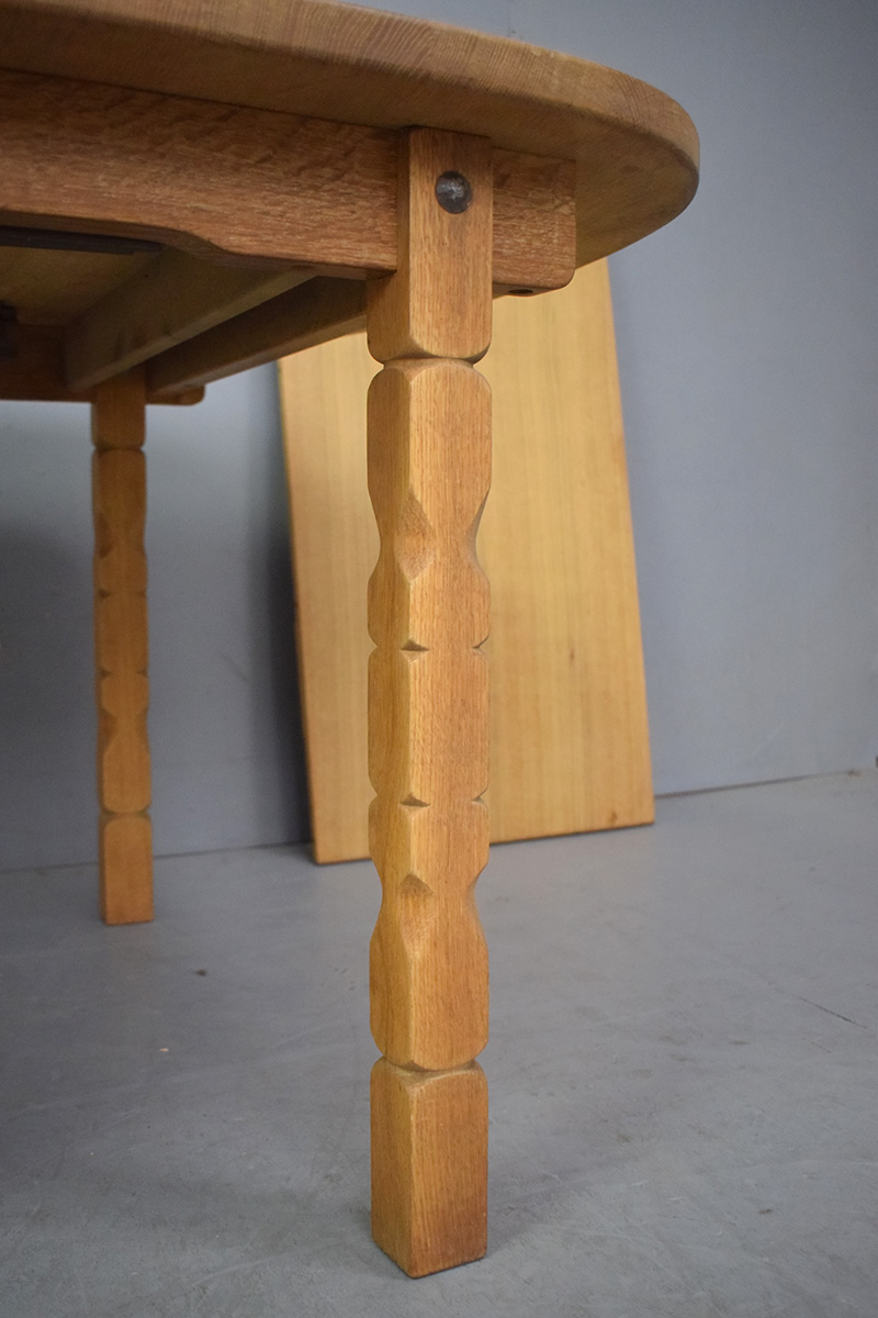 Classic farmhouse style vintage oak dining table with solid oak plank top and turned oak legs, extending with up to two extra leaves. To extend the table simply slide the top halves apart and insert the veneered leaves. You can add 1 leaf to seat 8 or both and comfortably seat 10 around it.
