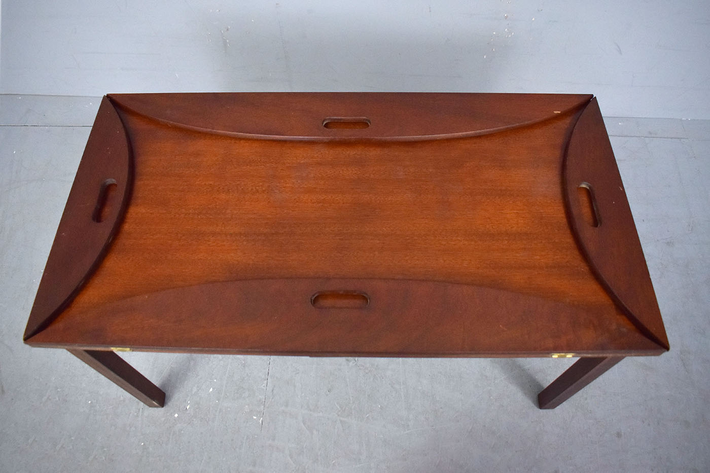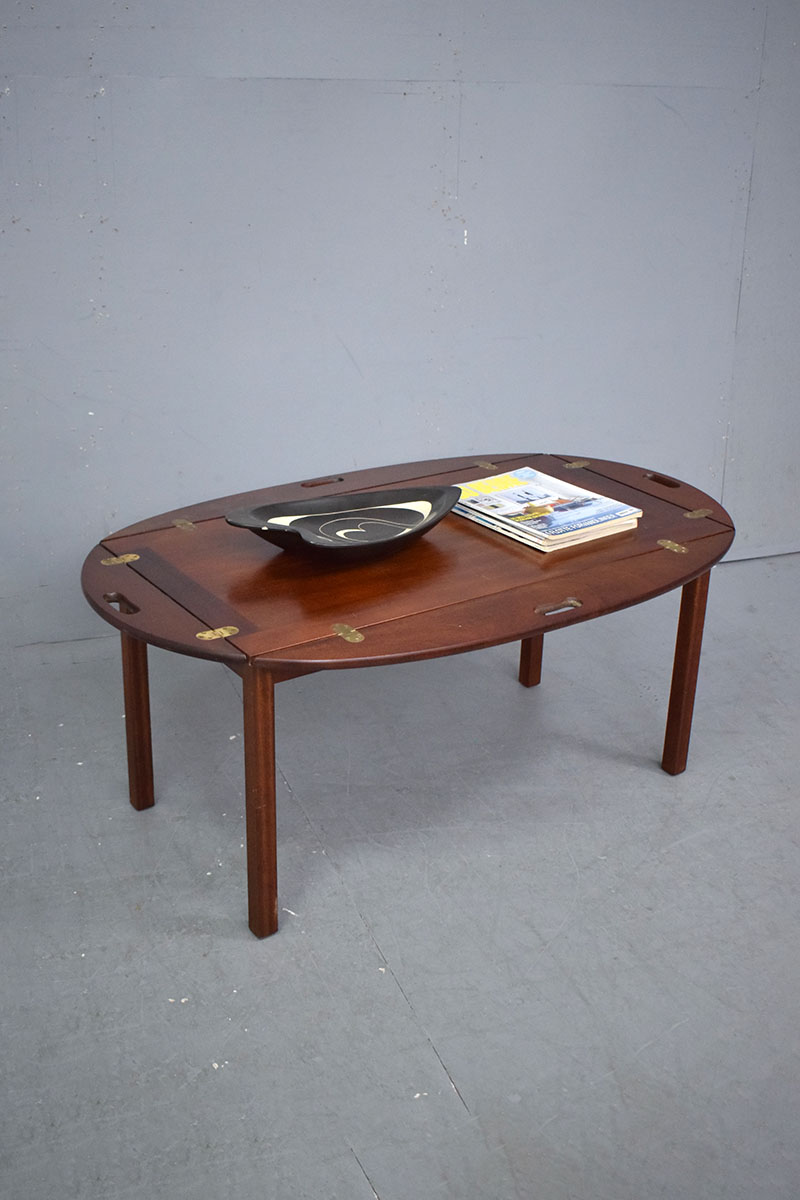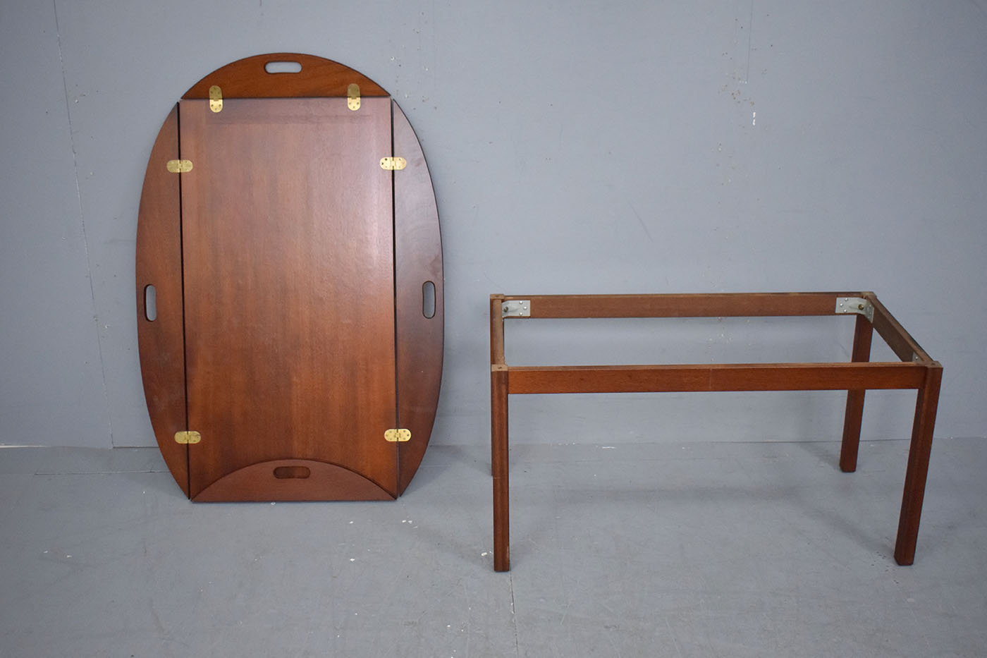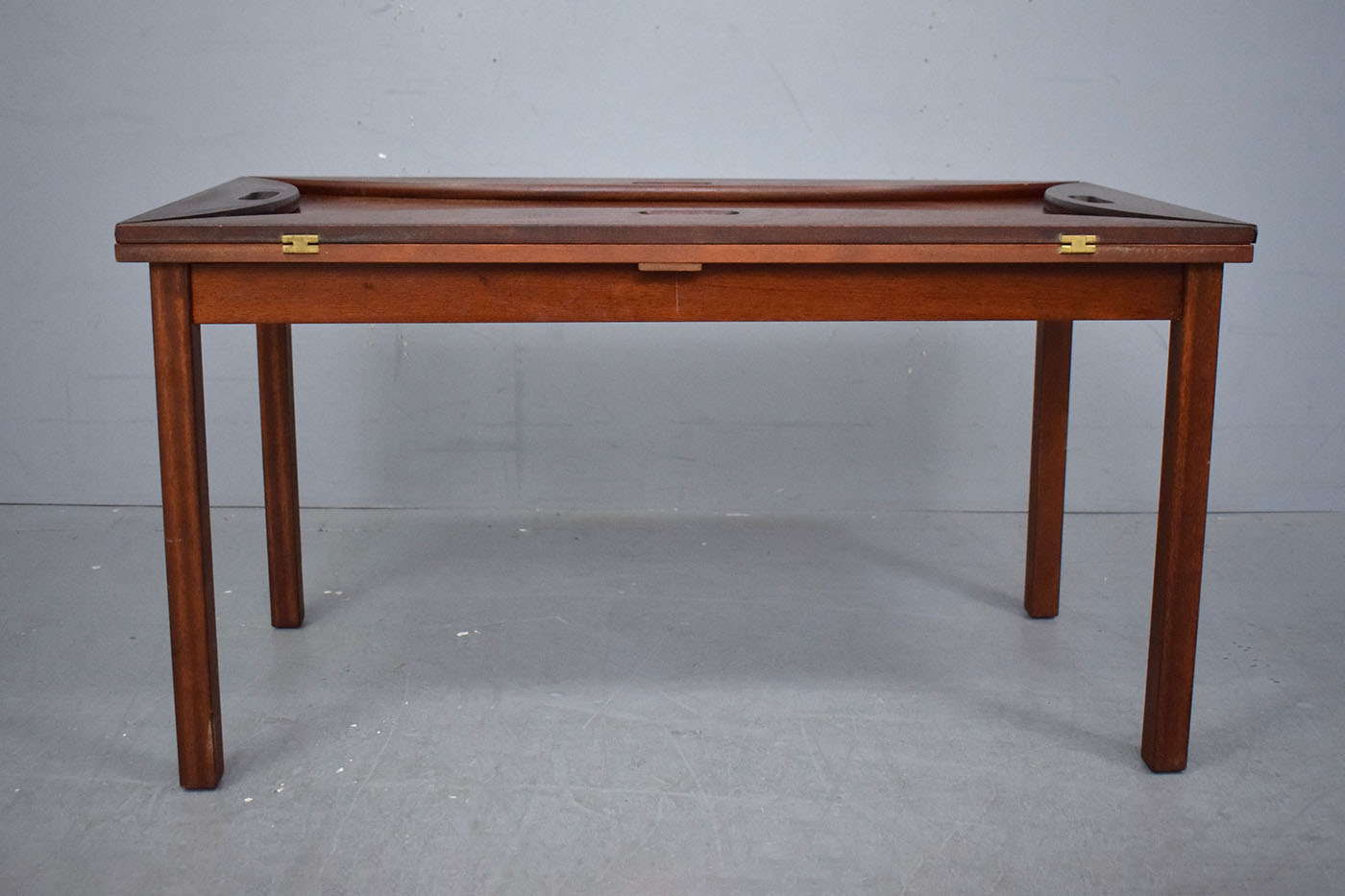 Vintage butlers coffee table in dark stain beech with fold out sides produced by Danish Mobelfabrik.