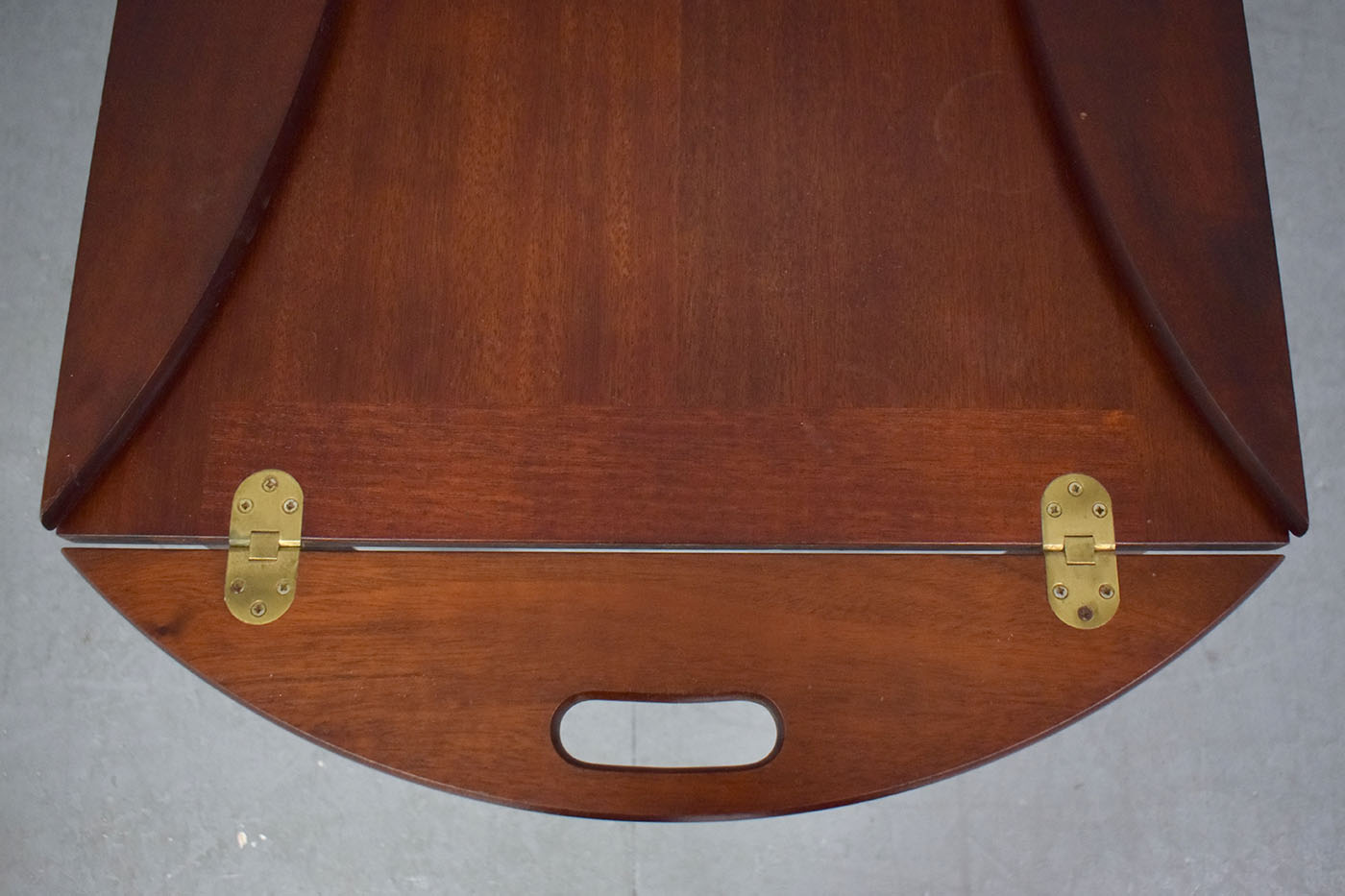 The deep rich tone of the timber is perfectly complimented by the brass hardware, used to attach the fold out sections of the butlers table.