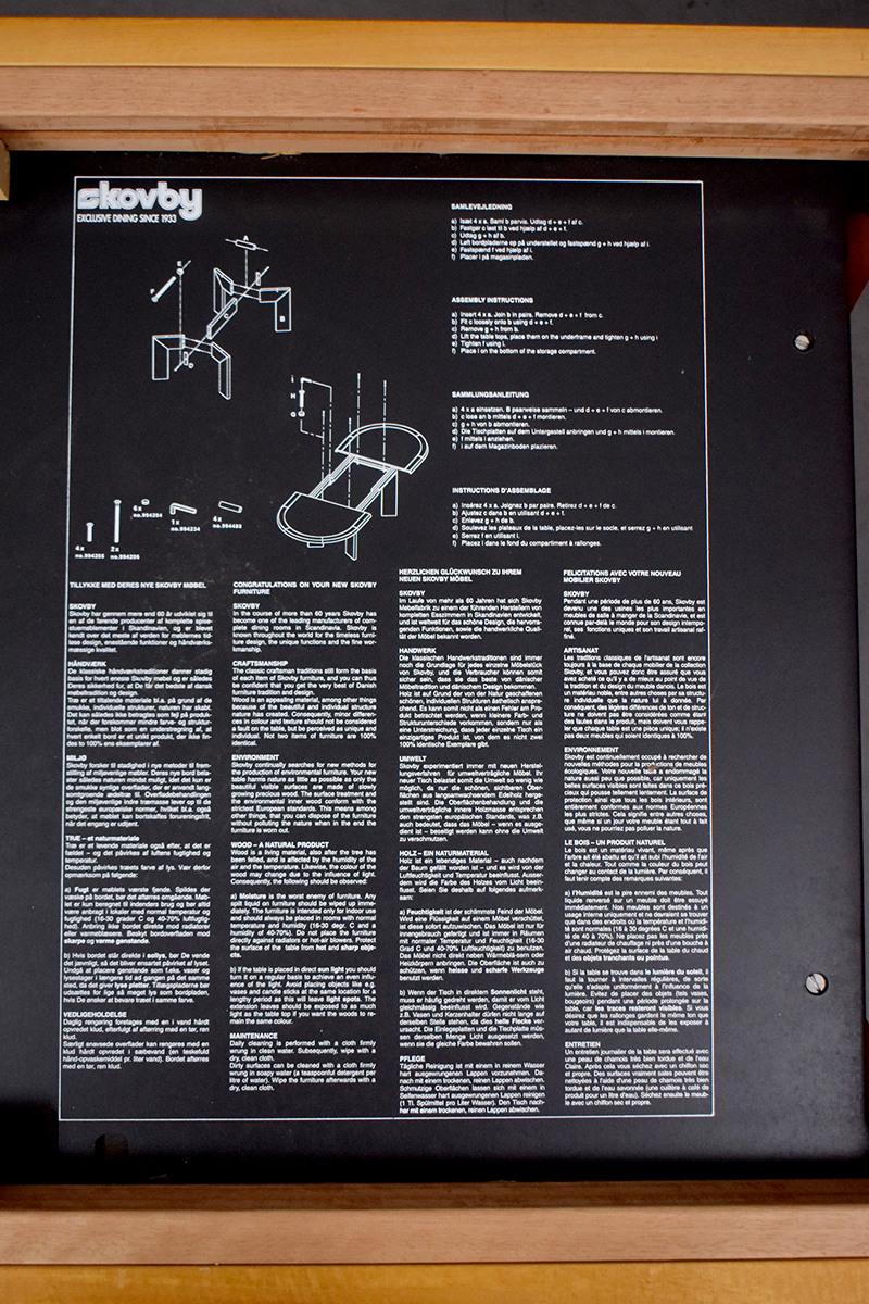 The table can be easily dismantled, as shown in the instructions printed inside the table.