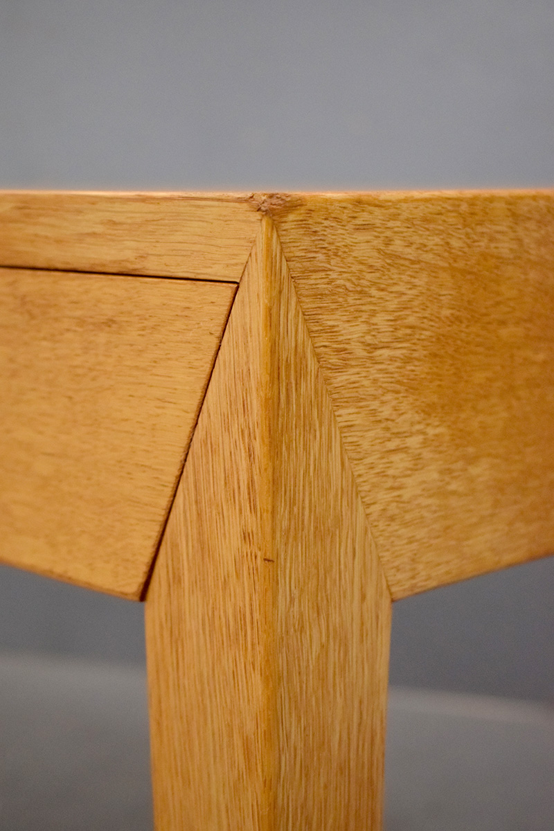 The signature design detail on all furniture from Haslev is the tri-angular joints on all 4 corners between the legs and desk edge. They taper down from the desk-top to the floor, giving the desk a light and open look.