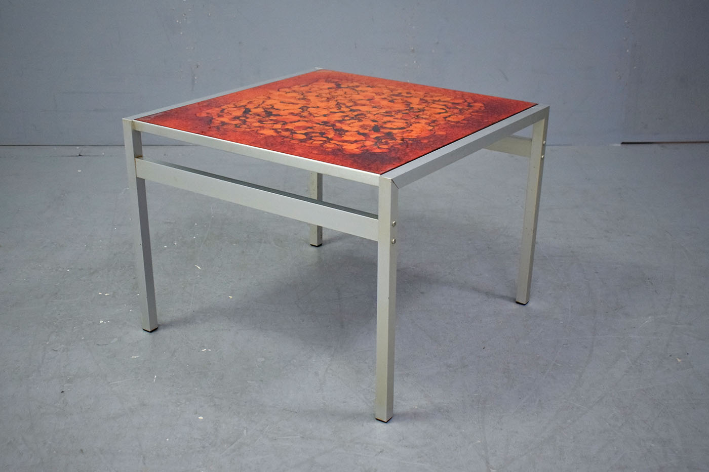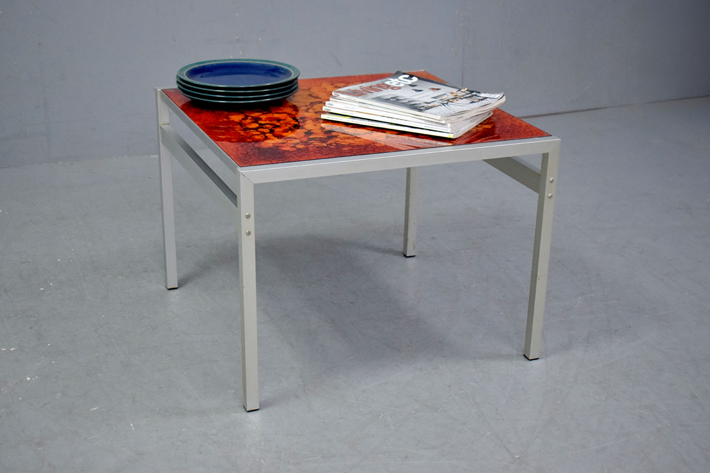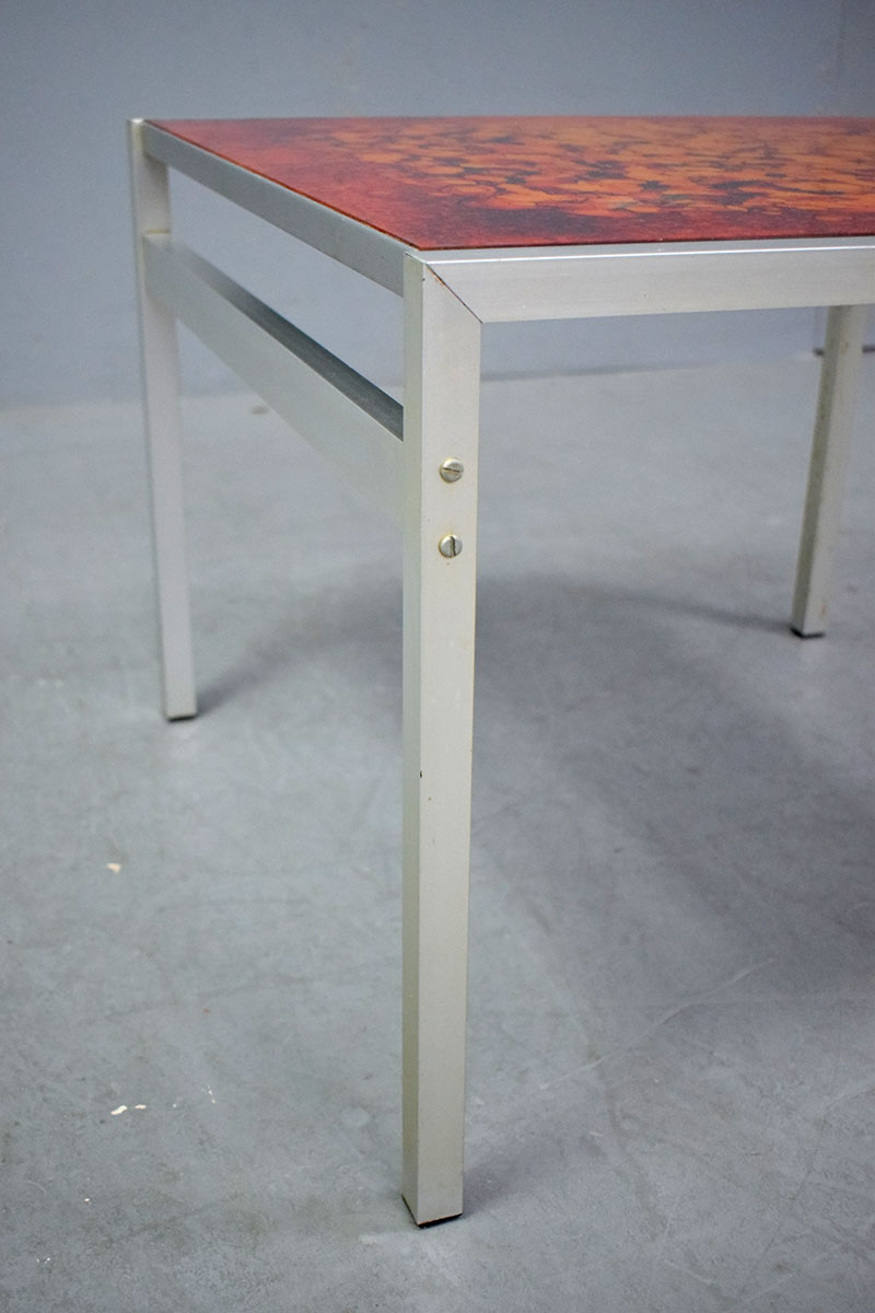 Stunning square side table with aluminium frame and marbled glass top, produced by unknown Danish artist.