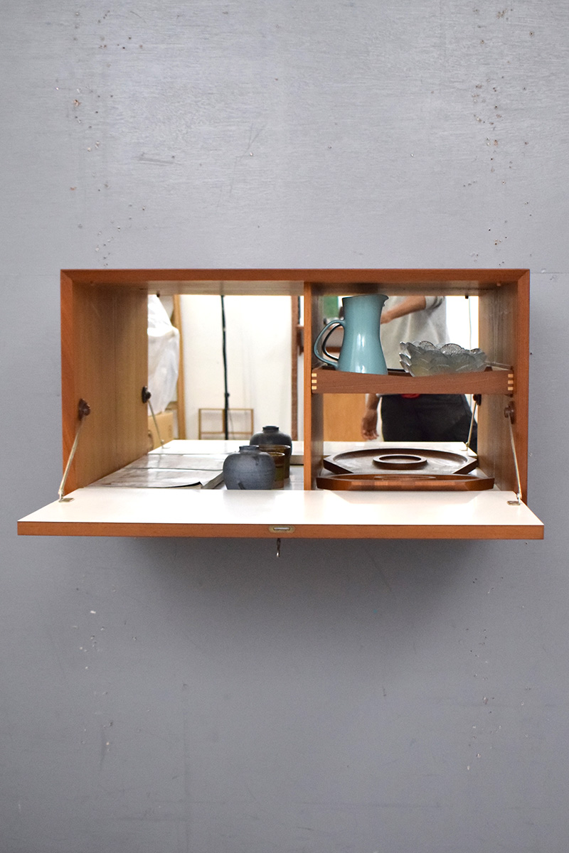 Vintage teak drop-front bar cabinet for use in the CADO System, designed 1960 by Poul Cadovius.