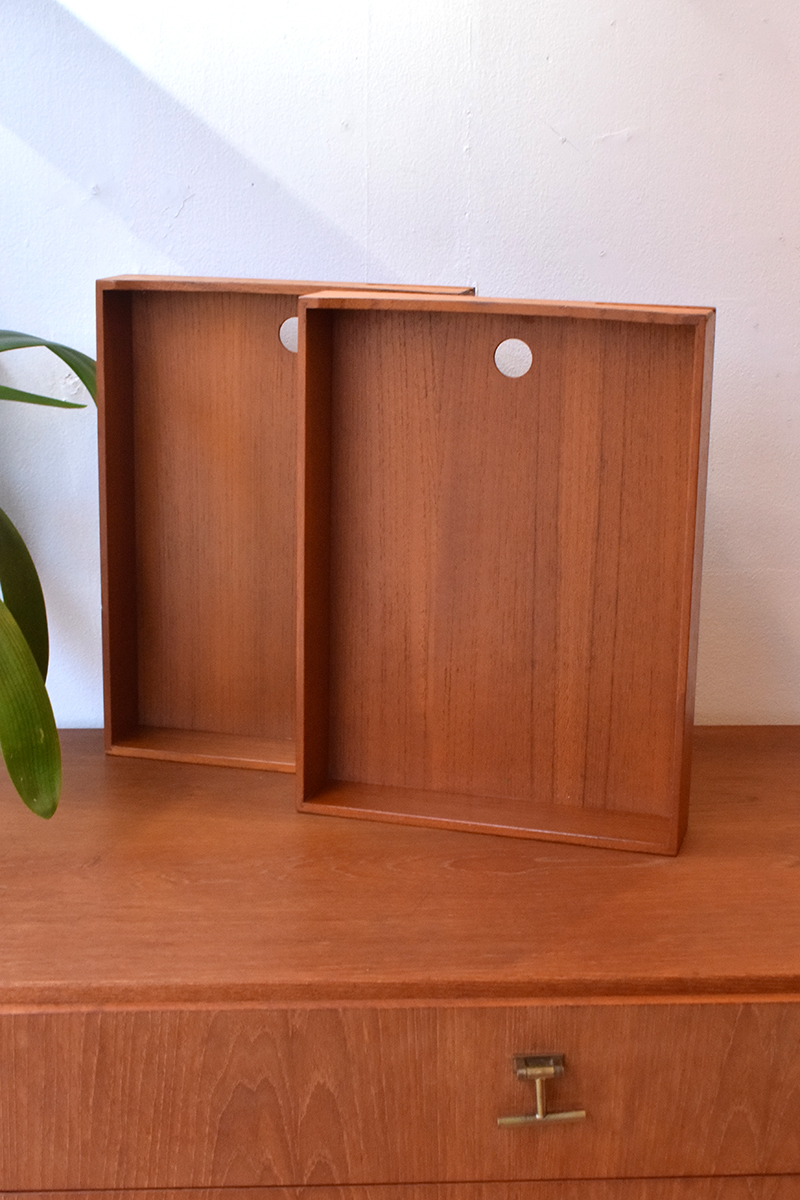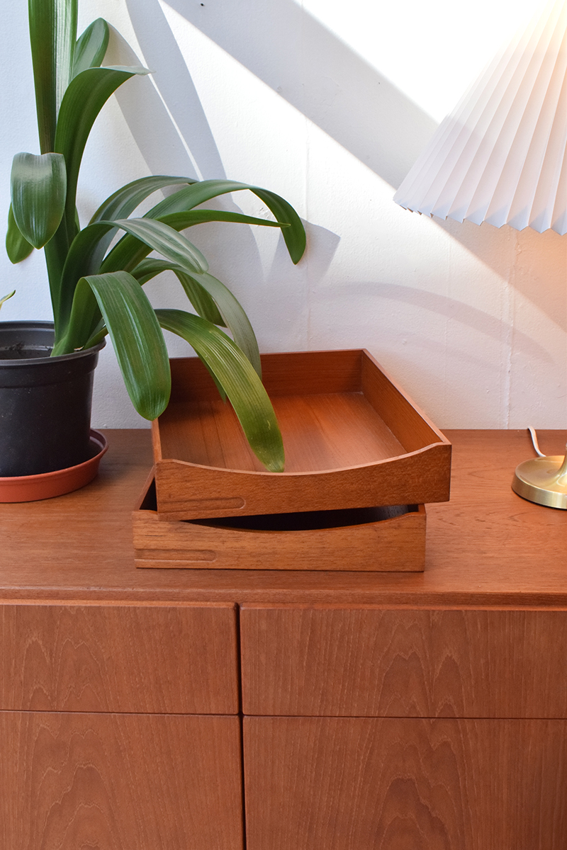 The trays have been gently cleaned and finished with teak oil, which helps to nourish and protect the wood.