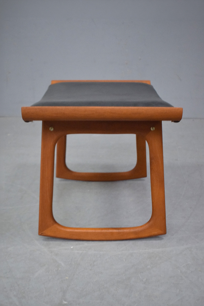 The rocking footstool is often claimed to be of Finn Juhl design, due to the similarities with the Bwana footstool - however, there is no evidence or makers marks to suggest this stool was designed by Juhl.