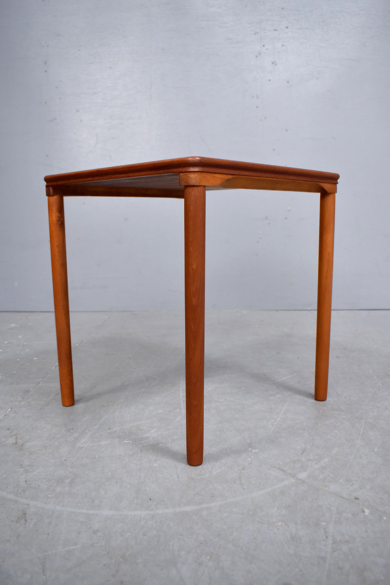 Vintage teak coffee / end table with square table-top and cylindrical, taping legs. 1960s design by E.W Bach for Toften Møbelfabrik.