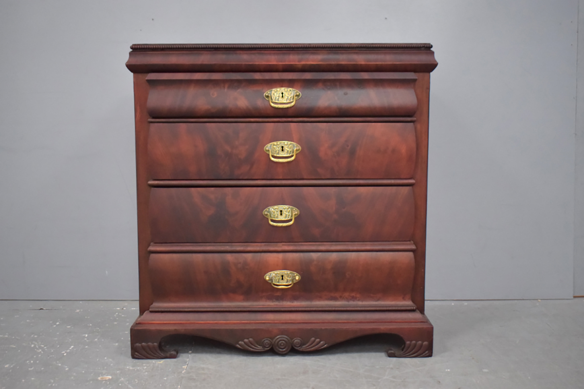 This chest of drawers offer excellent amounts of storage in a decorative chest made in mahogany during the Biedermeier period (1815-1848).