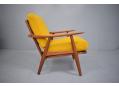 Hans Wegner design vintage teak armchair with original sprung cushions in yellow fabric made by GETAMA 1956