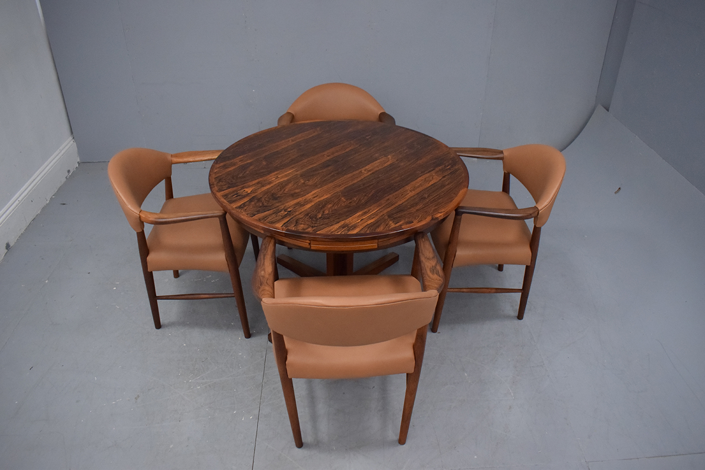 This impressive rosewood dining table is among the most admired tables made by Dyrlund due to its functions and how it extends