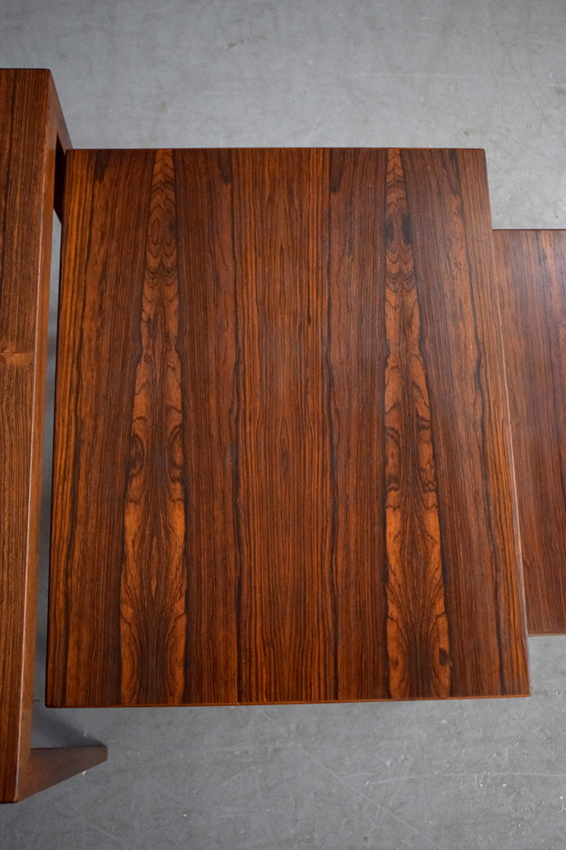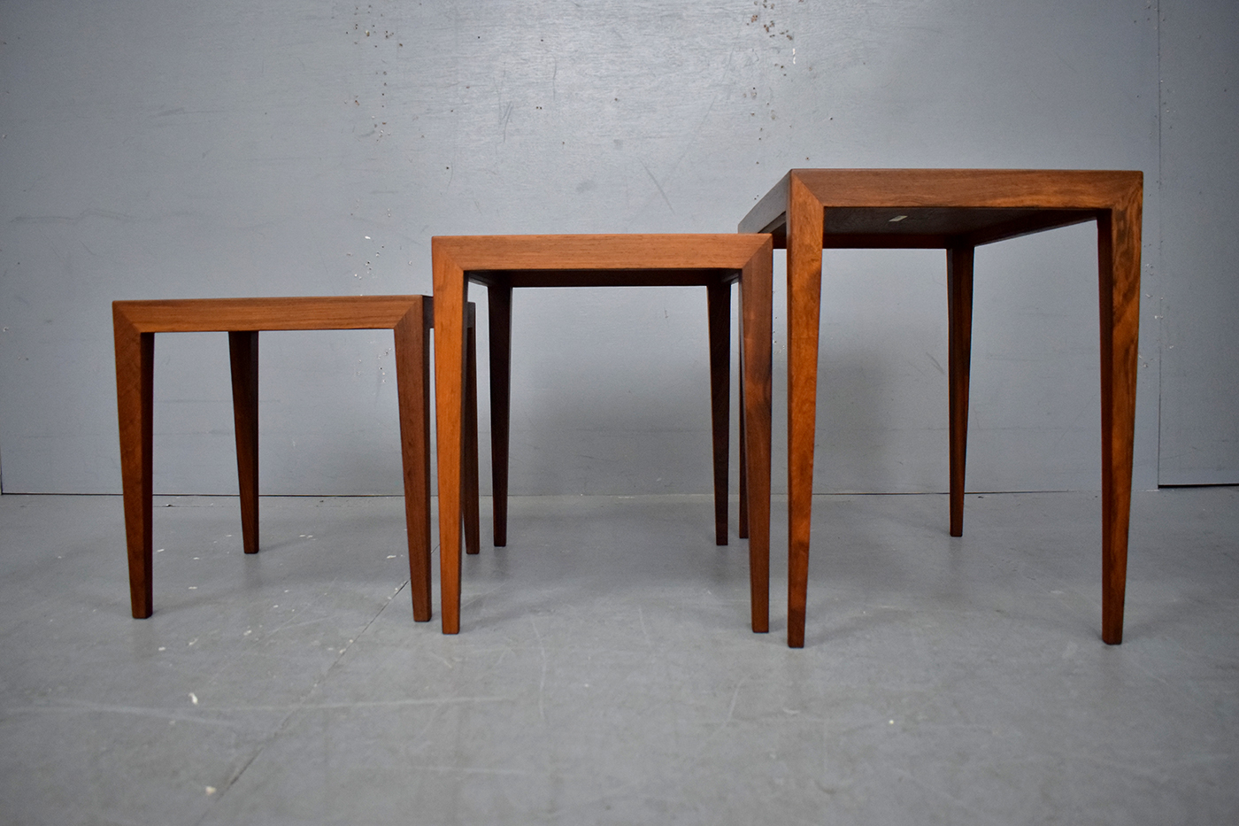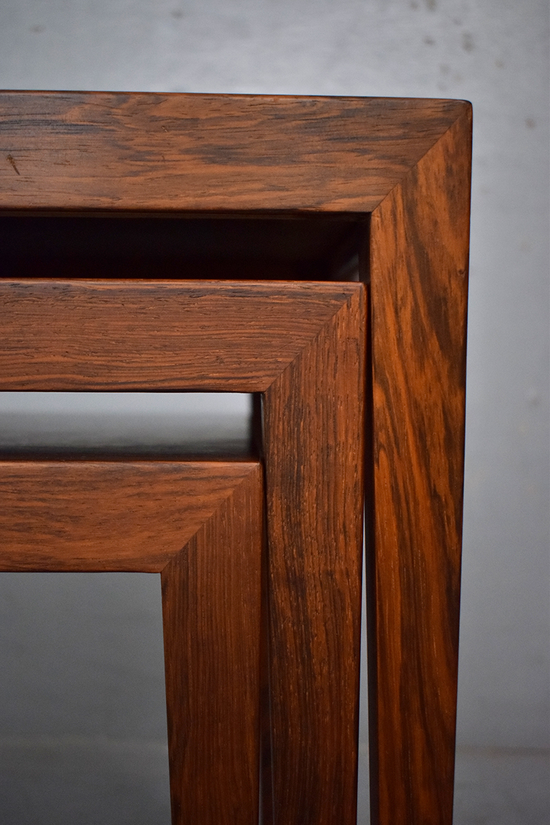 This nest of three tables feature minimal lines throughout with the signature Severin Hansen design triangular corner joins providing the tables with an elegant midcentury look.