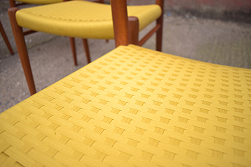 Woven Danish cord in MUSTARD colour used on vintage dining chair seats.